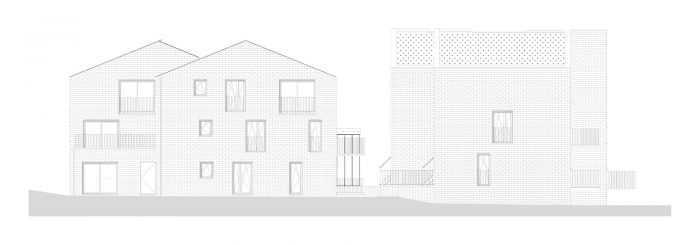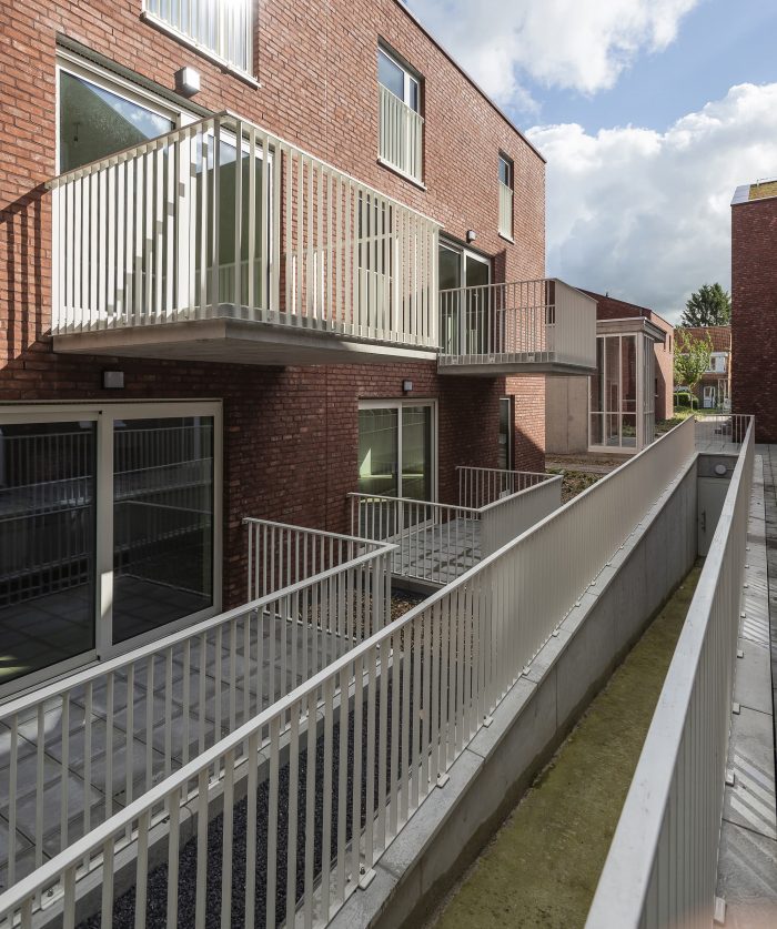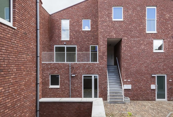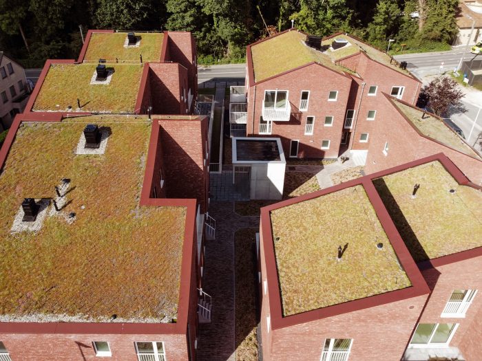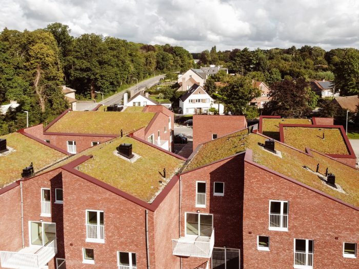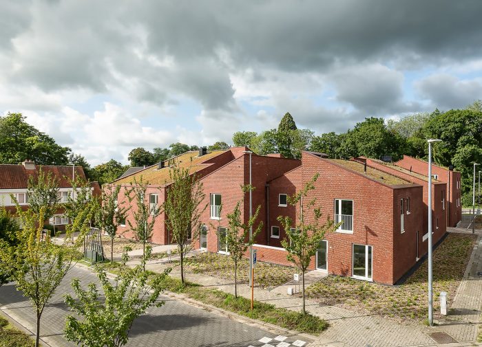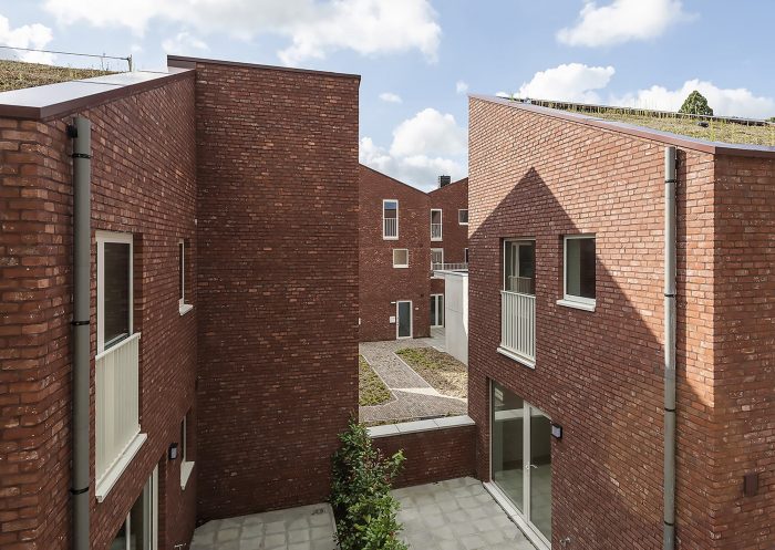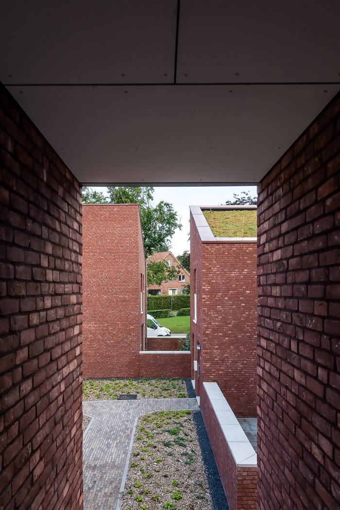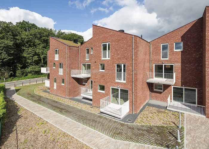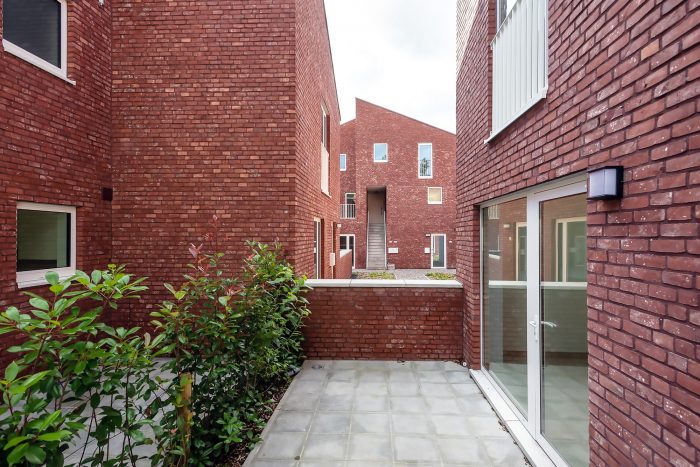 The project was finished in red face brick with white aluminum framing the openings. To ensure privacy, a combination of internal and external terraces was used. The volumes are topped with fully integrated green roofs and the houses are equipped with the latest ventilation, heating, and cooling technology. Finally, great care has been taken to ensure the highest level of acoustic performance to maximize the interior comfort and livability of the homes.