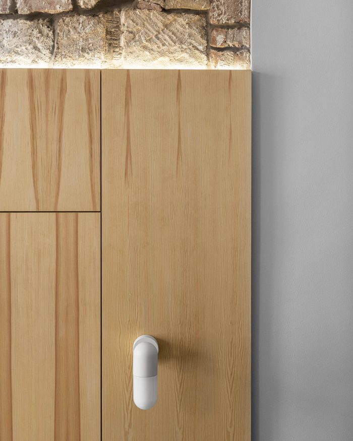 细节。一个重要的概念是在所有空间中不断使用天然木质材料。因此,这些空间不仅通过颜色的使用,也通过材料的使用联系起来。色彩方案(木、白、灰)反映了简单和清晰,这与一些天然砖的表面相得益彰。浴室中强大的绿色图案在其他房间中柔和地出现,将这个空间相对不相干的设计与其他房间联系起来。建筑方法和概念上的一致性在公寓的风格设计中发挥了重要作用,我们选择了当地当代艺术家的艺术作品,如Petra Hidvegi的陶瓷和Lavor Collective的Gabor Koncz和Kata Bereczki的绘画。我们根据这一理念选择了所有的配件,以便这些物品能够在更广泛的背景下完成设计。