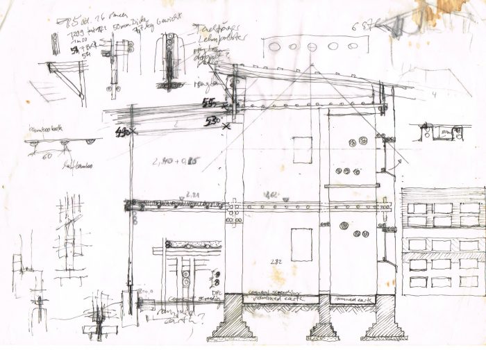 The DESI building reacts on this particular challenge – it is a model for a new and appropriate way of living in the rural areas of Bangladesh: an improved living standard (for the middle class – in this case teachers) that keeps the traditional level of sustainability. It is not the money that makes the main difference, but the care for a good craftsmanship, planning and design. It's a fair architecture that – irrespective of the social and financial status – motivates to a technical development of traditional building methods, instead of advertising the consumption of expensive and imported materials. In place of a cement-plastered brick wall, a sophistic woven bamboo wall becomes a sign of prestige. In that way an independent, local identity evolves quite automatically...