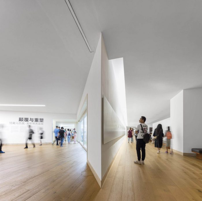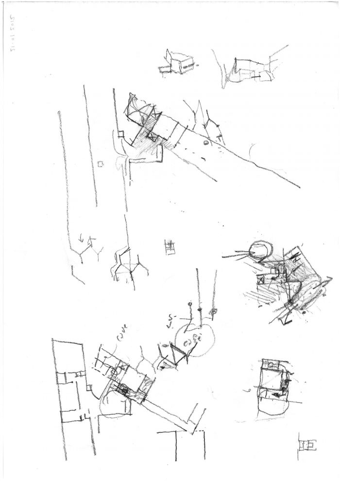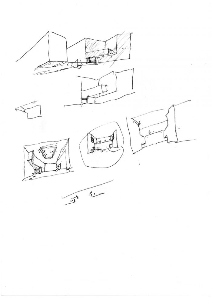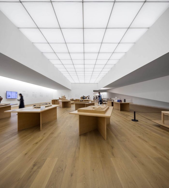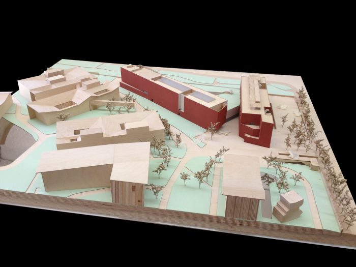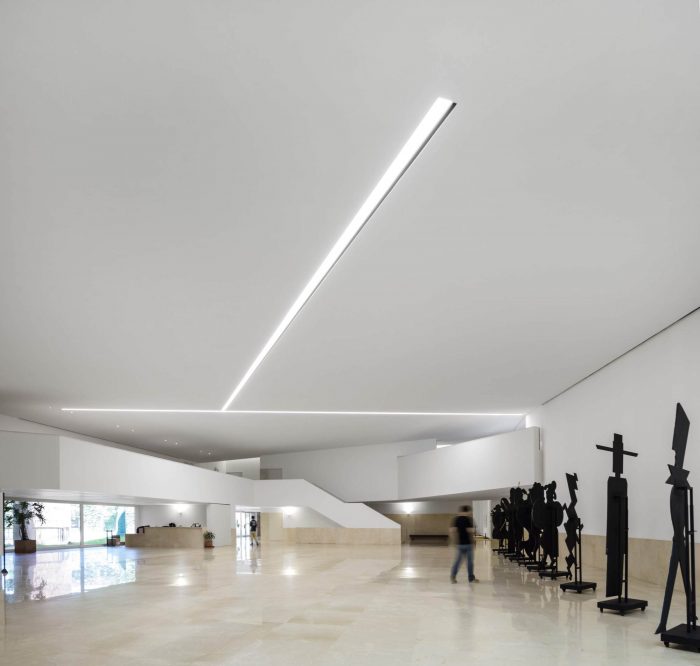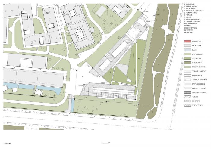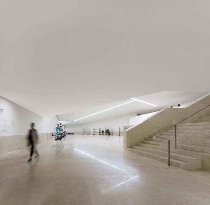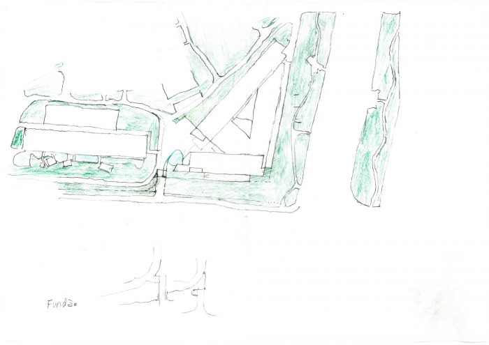 The huge CAA collection and its recent acquisition of a large set of originals items from the Bauhaus School prompted the idea of a museum for the permanent collection along with other works and temporary exhibitions. We were given a characteristic museum brief, apart from some specific features. The huge campus was already nearly fully occupied. There was only one area still available on the south-eastern edge, at the intersection of two major roads in this expanding area. The available land has a triangular shape, with the planning restrictions of an urban and environmental nature that defined the building’s possible footprint and volume.