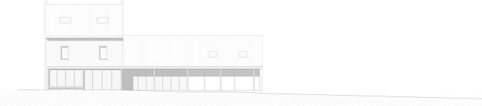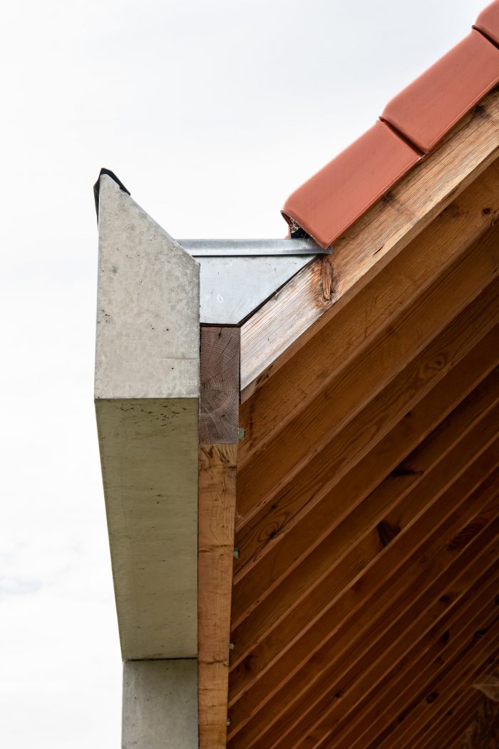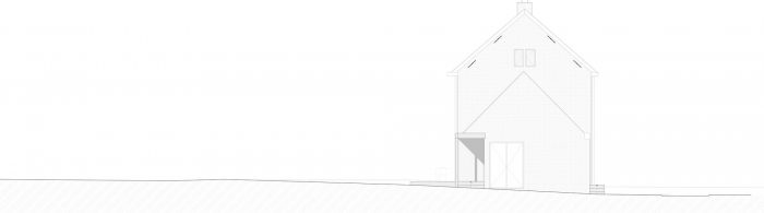 城市规划法规迫使我们重建谷仓。因此,这个废墟被翻新,部分被纳入生活区。另一部分被改造成一个双车库。房子原来的正面被恢复到以前的辉煌,谷仓的景色也没有改变,这也是因为当地的规划规定。然而,后立面被安装了大窗户,提供了周围田野和自然的壮丽景色。它们还通过一个突出的混凝土门廊结构将两个体量连接在一起,该结构还为屋顶天沟和皇冠造型提供了形状。