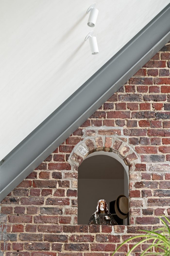 The result of this thorough renovation is a house designed according to its potential, with the necessary respect for the past. The design allows the resident to go on a voyage of discovery, with each room having its own identity. In addition, the connection with the garden, strengthened by the large width of the house, and the surrounding fields provide an absolute added value. And all this under the all-seeing, approving eye of a strategically placed holy statue. Deus videt te.