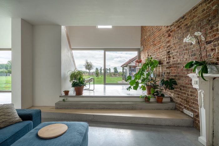 In the middle of the Flemish fields, our clients bought an old house with an adjacent, dilapidated barn. Both buildings were in urgent need of some tender love and care, but there was one big asset: the location.