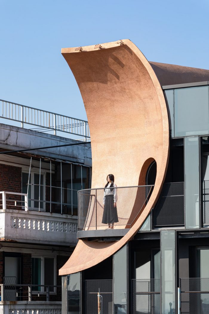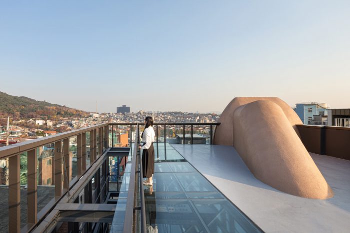 The meaning of Haebangchon, freedom, or liberation town is inscribed into the design via a penetrating staircase and subsequent balcony, of course, the rooftop is the ultimate liberation…liberation from architecture. The other element is the fake wall that surrounds two sides of the design. One is much larger than the other, which is designed as a narrow balcony, 3rd floor has a very useful and cozy balcony surrounded by the fake glass wall at a distance.