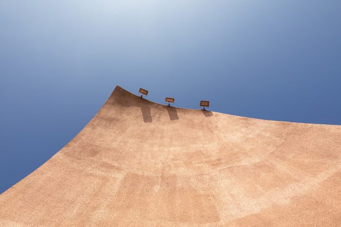 第一个想法是提供一个被建筑本身阻挡的屋顶景观。一个像虫洞一样的、对角线的、穿楼的楼梯从路边开始,通往2楼的阳台,提供一个很好的视野。这个对角线黑洞式的虫洞楼梯被设计成一个祭品,一个对公众的祭品,就像金贝尔的路易斯-汗的遮阳拱门的祭品。另一个公共祭品是入口处凹陷处伪装成台阶的圆形座椅。我设计这些祭品的目的是为了邀请许多路人体验街道的风景,以及屋顶的风景。