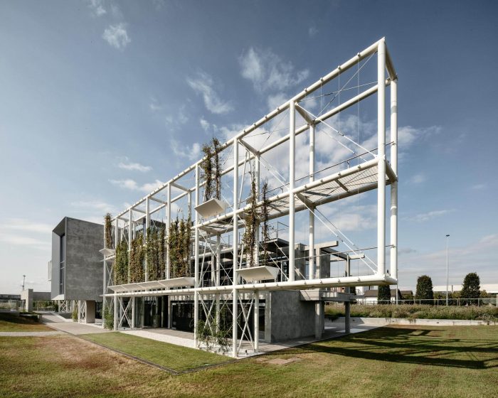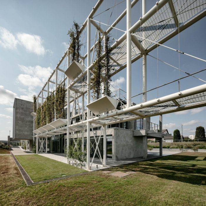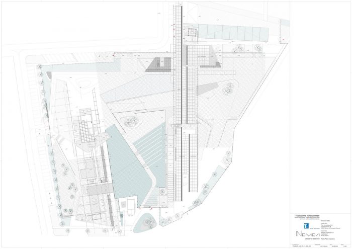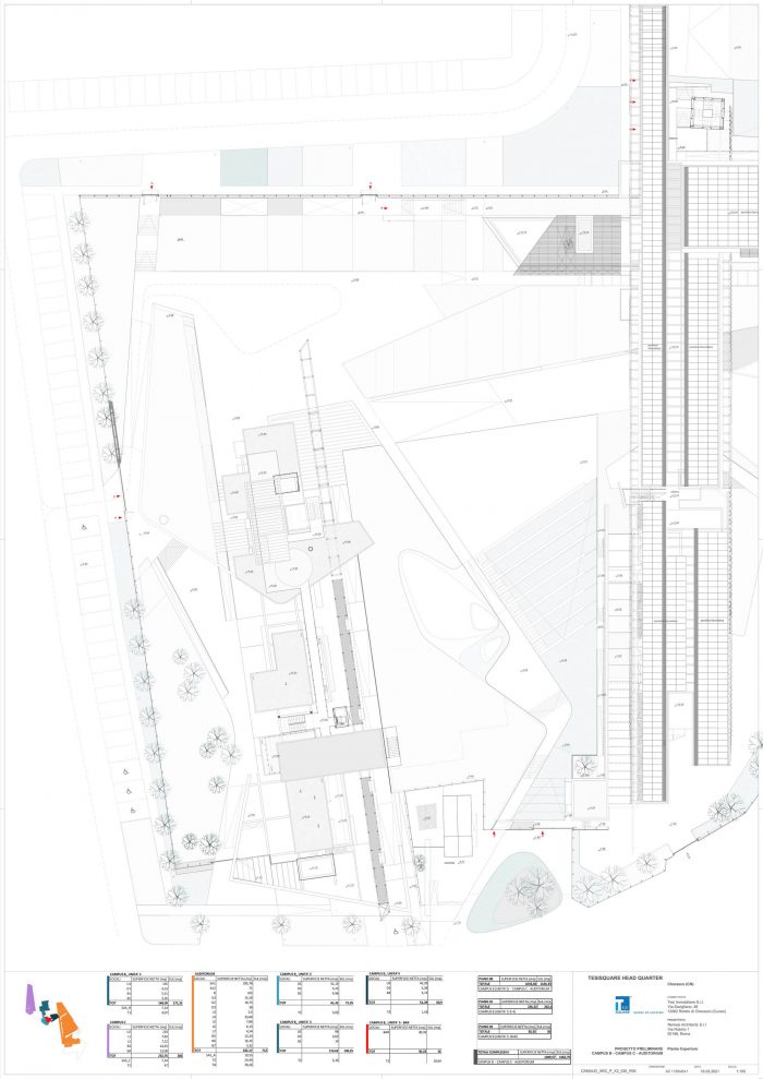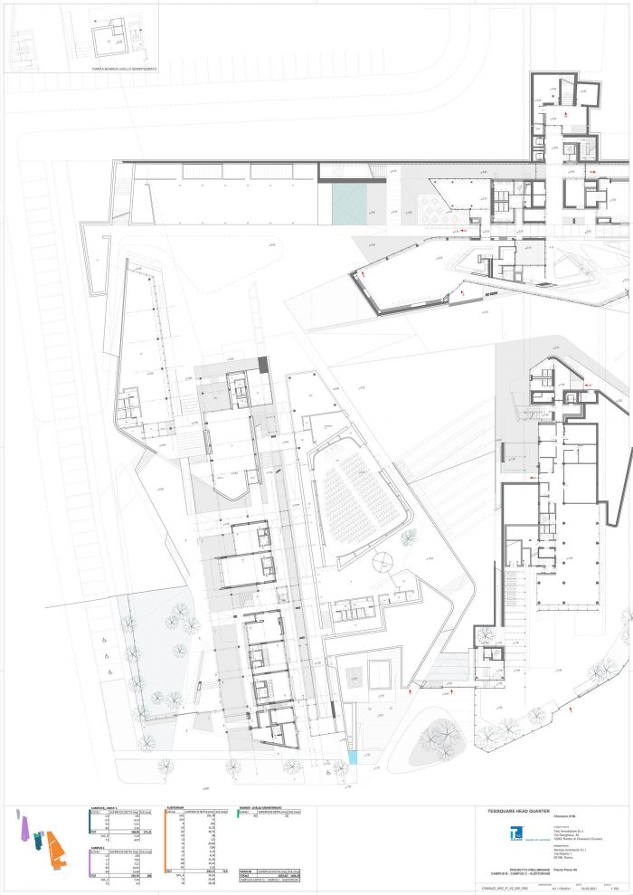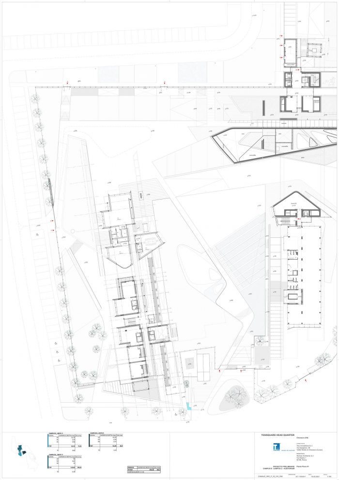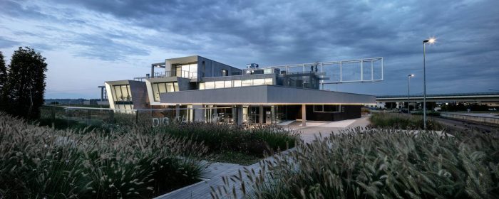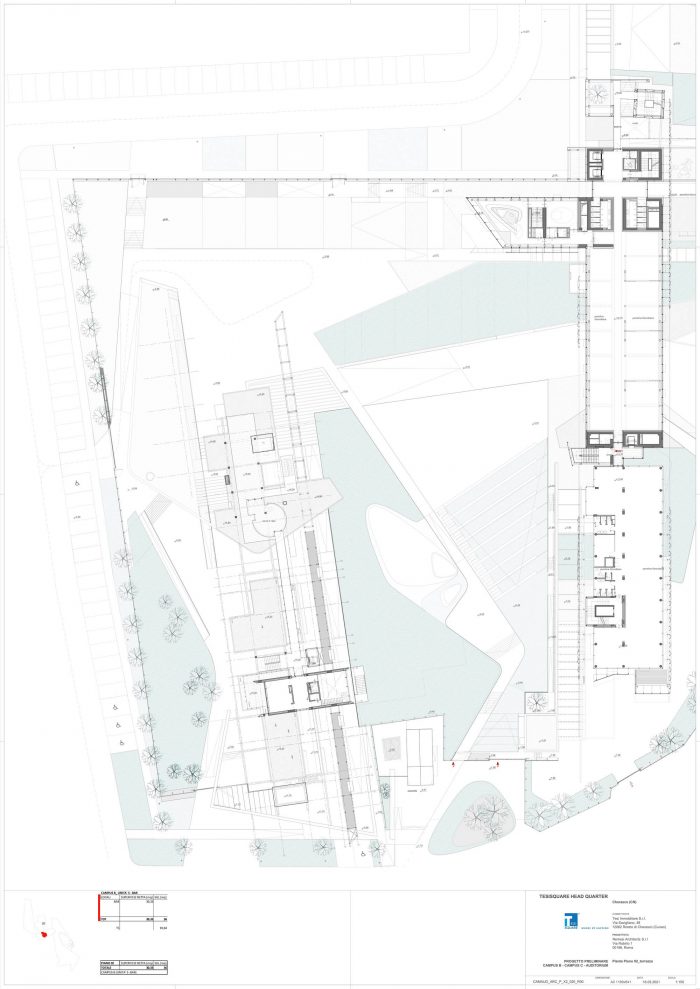 “We opened the first part of an architecture at the service of the community – says arch. Michele Molè, AD of Nemesi – in the Olivettian mood that mark Tesisquare vision: an open, inclusive, transparent and sustainable company. We have designed it together with the client, whose aim is to bequeath to the citizens a system of landscape connections, networks and knowledge — literally an “hive of ideas”— that could give value to the local dimension of the project, but with an international perspective. This is why we say this is a “positive impact” project: an architecture that gives urbanity to a territory, creating welfare and identity and in doing so helping to define a community and to spread high-quality.” The office building of which DIG421 is the first step —made of concrete, steel, glass and organized in modular units— is inspired by the binary code and follows a continuous articulation between workplaces, venues and green areas. Nature and landscape are essential part of the masterplan and interact with architecture, shaping one other, creating an urban fabric punctuated by green backdrops, landscaping, plant shells and a network of common areas —pedestrian paths, small squares, a cafeteria, a kindergarten, an auditorium (hypogeum), dining areas, a park and a pedestrian and cycle area open to citizens; the architecture outlines a soft landscape integrated with the territory able of shaping the idea of continuous connection between urban and natural areas, between work activities and wellness areas.