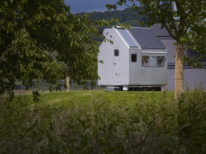 Inside, Diogene consists of a partitioned space featuring a pull-out sofa and folding table in one end, and a shower, toilet and kitchen in the other. As a Vitra product, Diogenes is intended to be a versatile unit that could serve as a weekend retreat, office or even placed in groups to form an informal hotel.