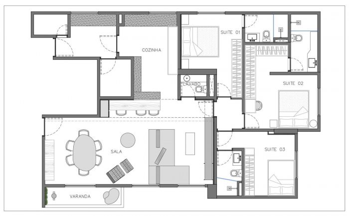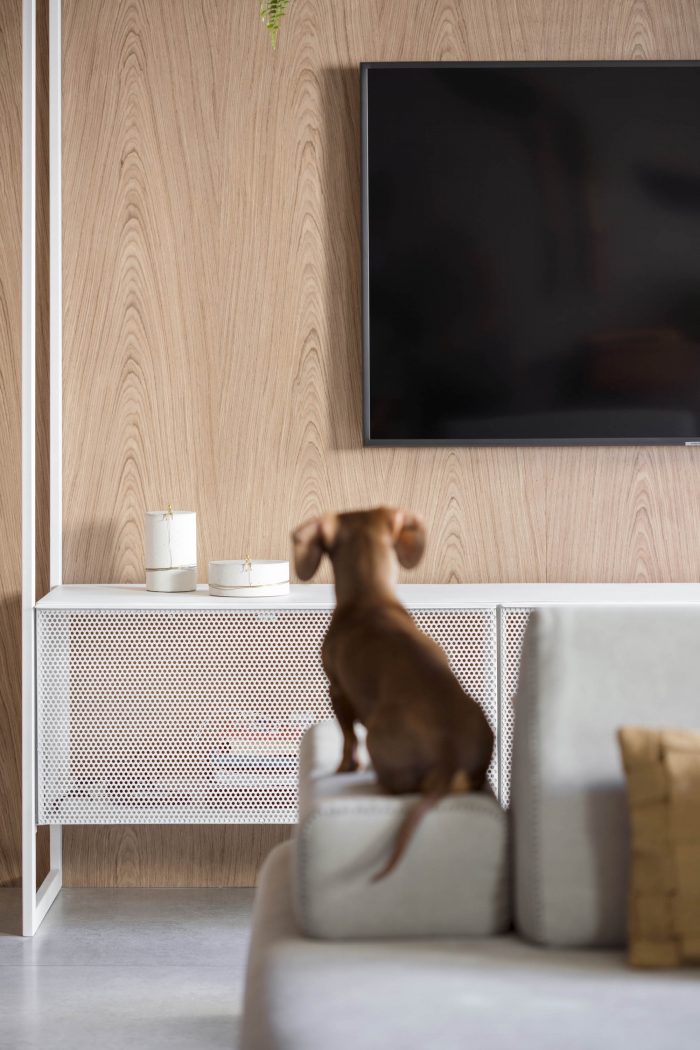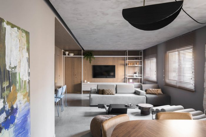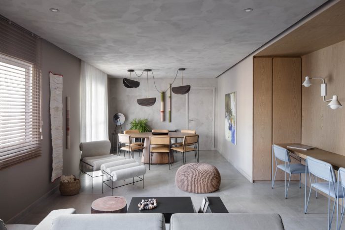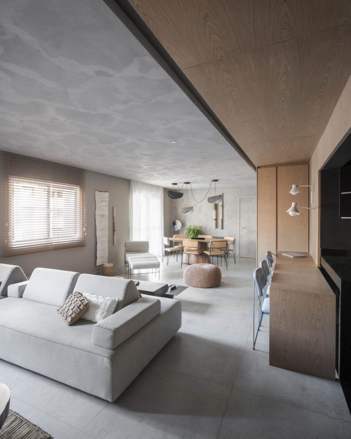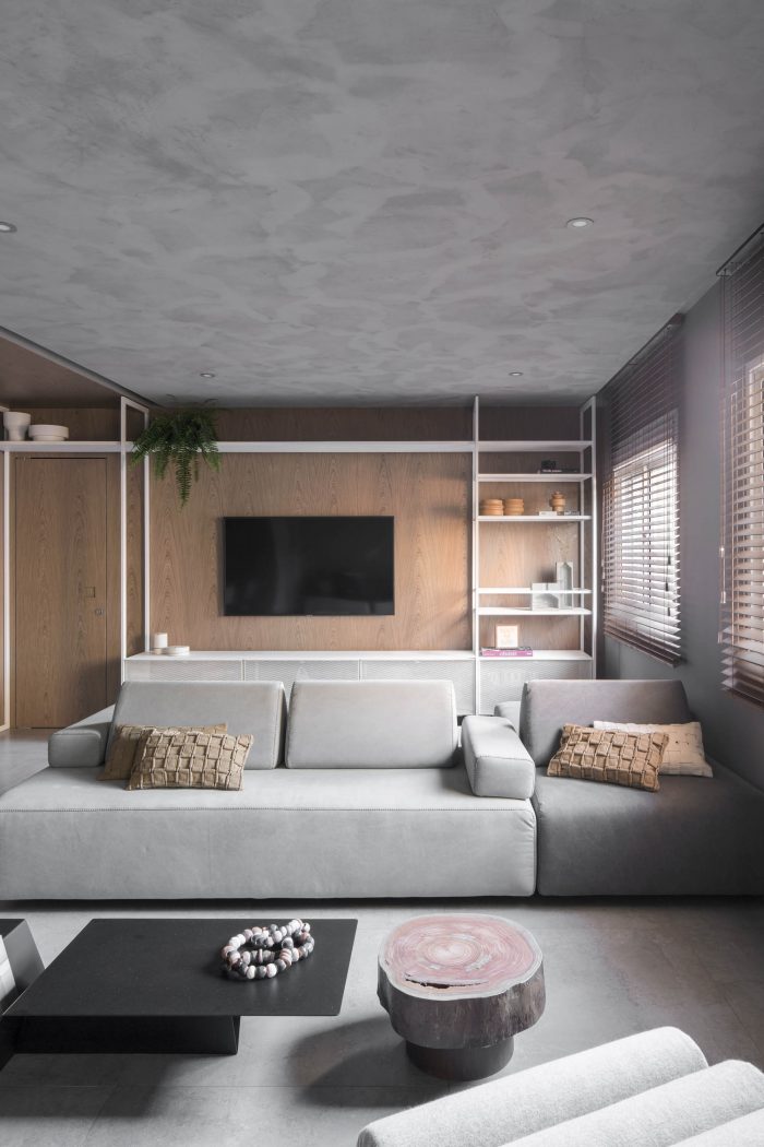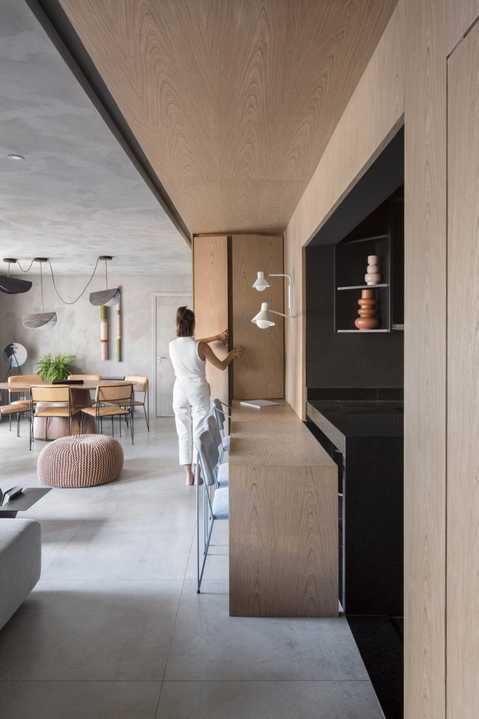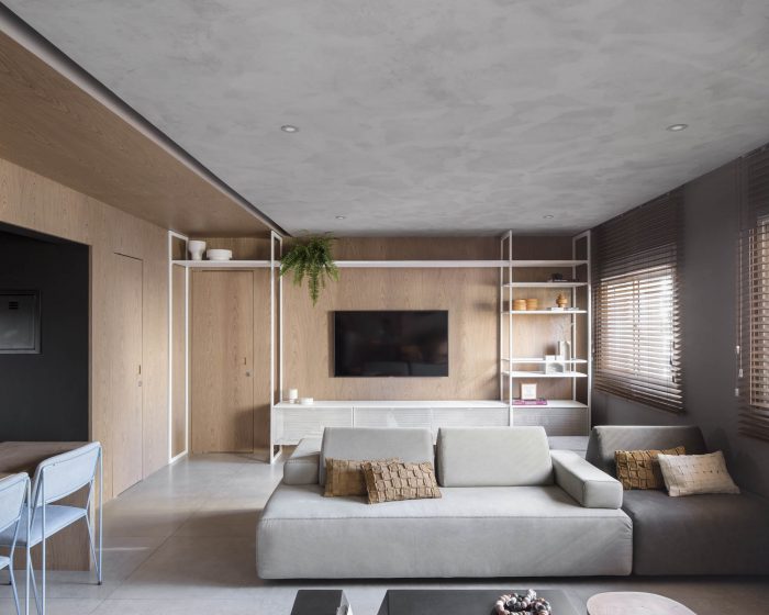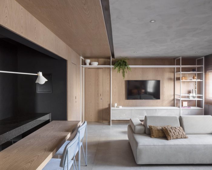 The DÔ apartment seeks a dialogue between esthetic and function in new possibilities, look forward to work colors and textures in all their potential to sector spaces while keeping them completely connected. The project itself explores the possibilities of combinations of texture and colors, a neutral base composed by design full of life. The experimentation of grey at the base, worked in different textures, talk to each other until meeting the intensity of the black and the warmth of the wood.
