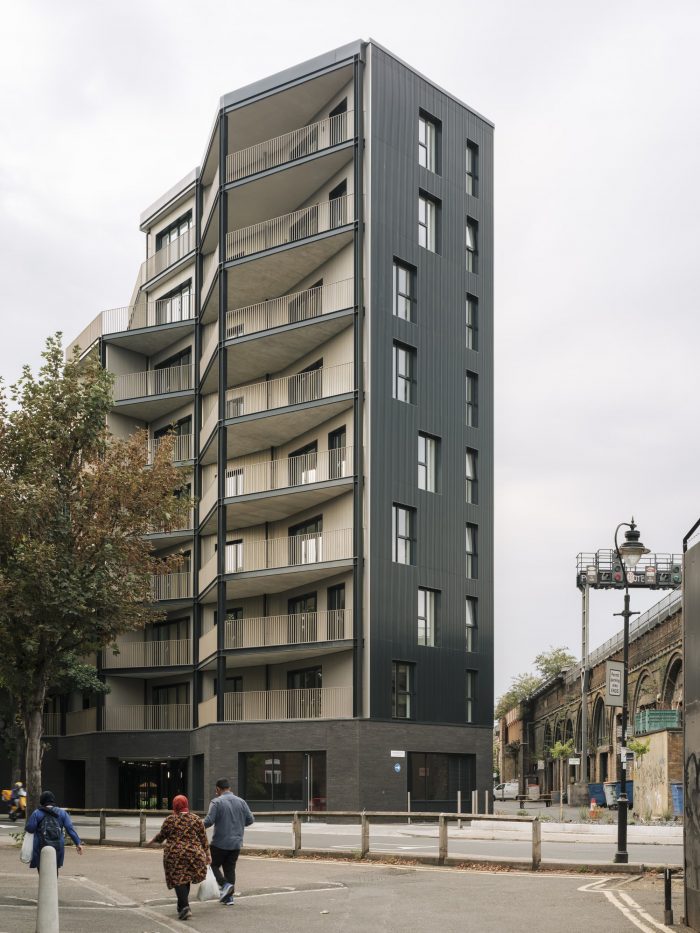 Occupying a former industrial site, surrounded by housing estates and a railway viaduct, the scheme incorporates private, shared ownership and social housing tenures. A mixture of shops, restaurants, and cafes, along with artisan food producers and wholesalers are located at ground level and in the adjacent railway arch, which makes up part of the wider regeneration of the railway arches along Southwark’s ‘Low Line’.