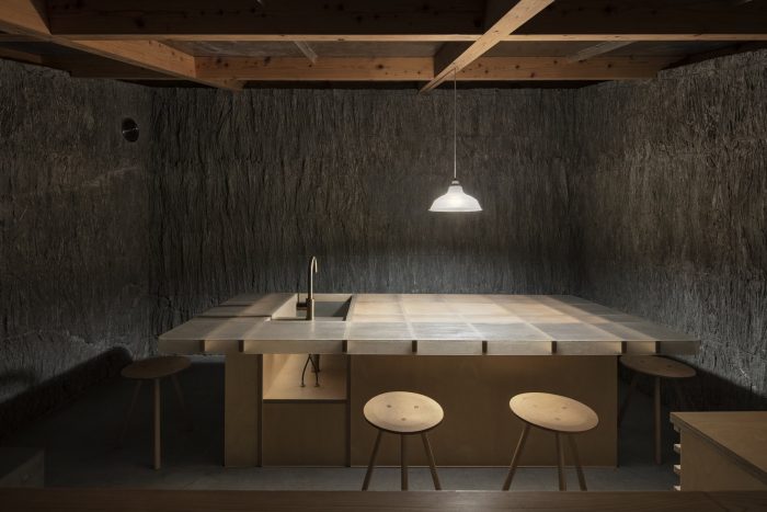 We designed the pub “EL AMIGO” like a hole in the ground to enjoy nightly drinks in a cozy atmosphere around a table with the host. In the daytime, gentle light, reminiscent of light passing through shoji screens, filters in through the FRP roof. One can open the window to enjoy a panoramic view of the sea from here as well, which is a perfect setting for holding tea ceremonies in the ryurei (standing) style.