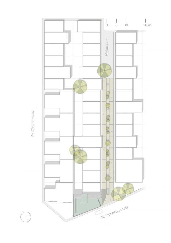 在这个项目中,我们确定了马塔莫罗斯人行道作为影响区,它从房产的北面开始,穿过20个邻近的房子,直到一个现有的小教堂,这被尊重为干预区的界限。一旦我们确定了要再生的区域,我们就实施了一个参与性的社区行动计划,从项目的介绍和对人行走廊的干预,到考虑邻居的意见,处理投诉和举行邻里会议。