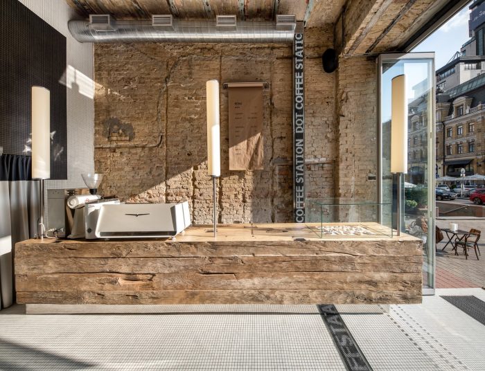 DOT Coffee Station #1 is a city café that is based in one of the most active neighborhoods in Kyiv and specializes in high-quality coffee drinks to go. The interior of the venue is a manifestation of modern city life. It is eclectic with a soft rhythm and an urban vibe.