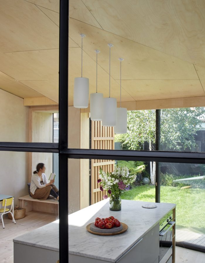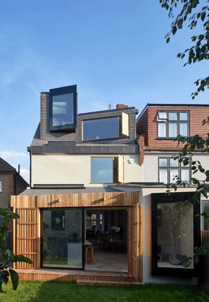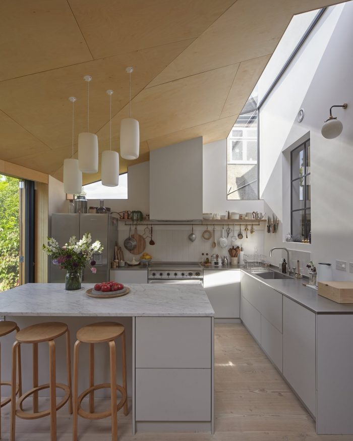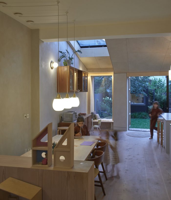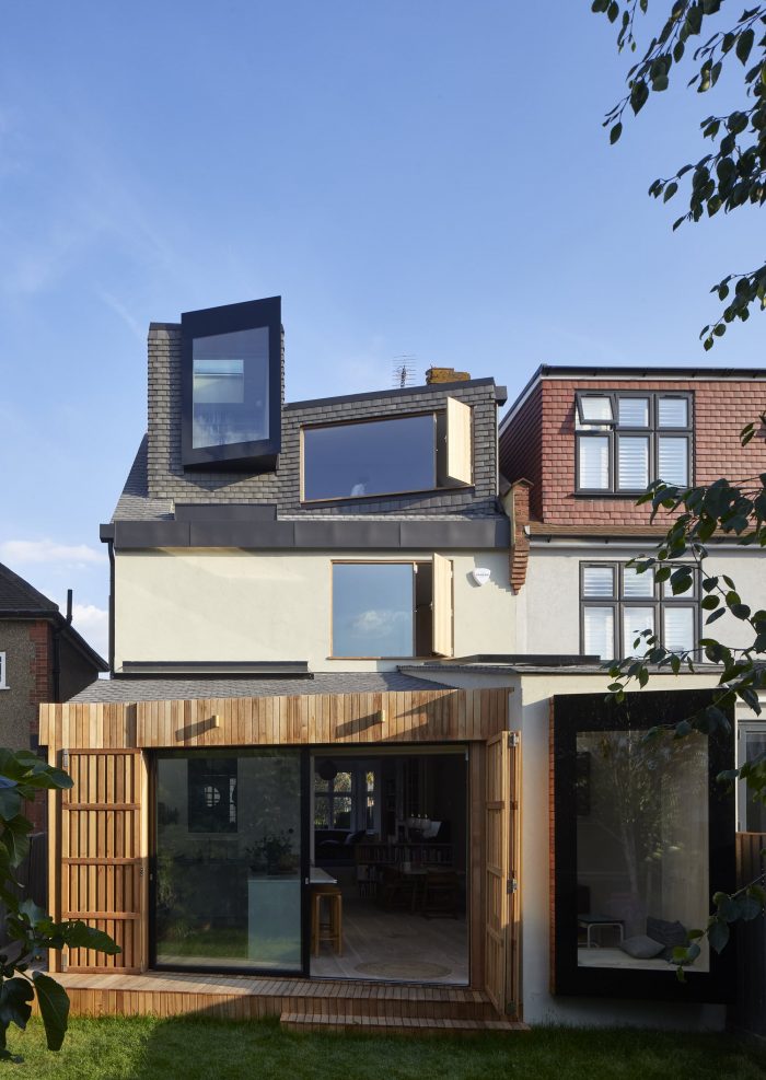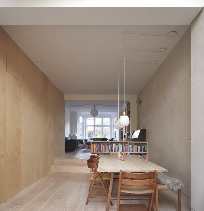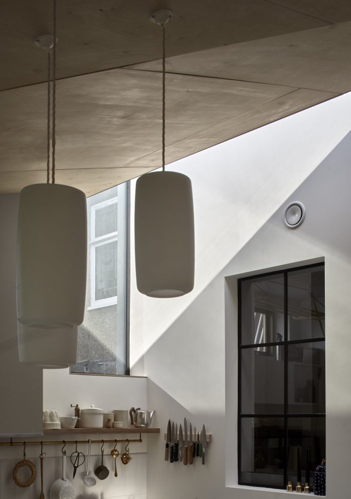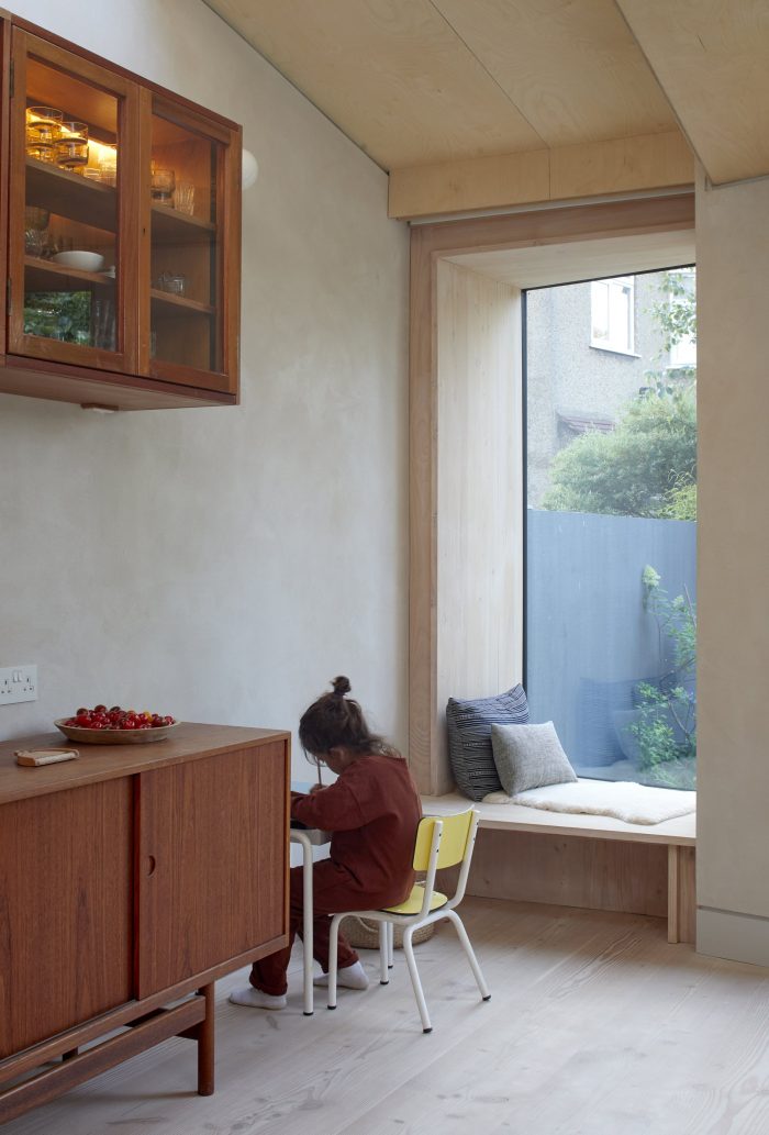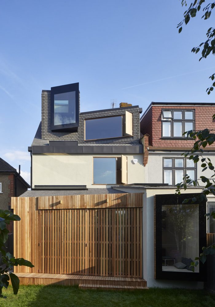 All dressed in Danish timber, Douglas House has become a warm living space, clad in unique materials and with secret hideouts that surprise you in unexpected corners of the house.It is is a three-storey house, with the family rooms taking over the Ground Floor that extends into the garden, a ground floor that also houses a feature utility room that has been designed with the utmost care, and a series of built-in larders that extend from the timber floor and hide within the walls of the living room.The First Floor is made up of the children's rooms, decorated with wooden details and other natural materials, and a stunning family bathroom that lets you bathe under the natural light that seeps in from the roof light above.