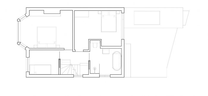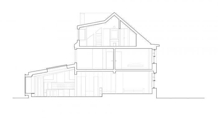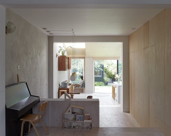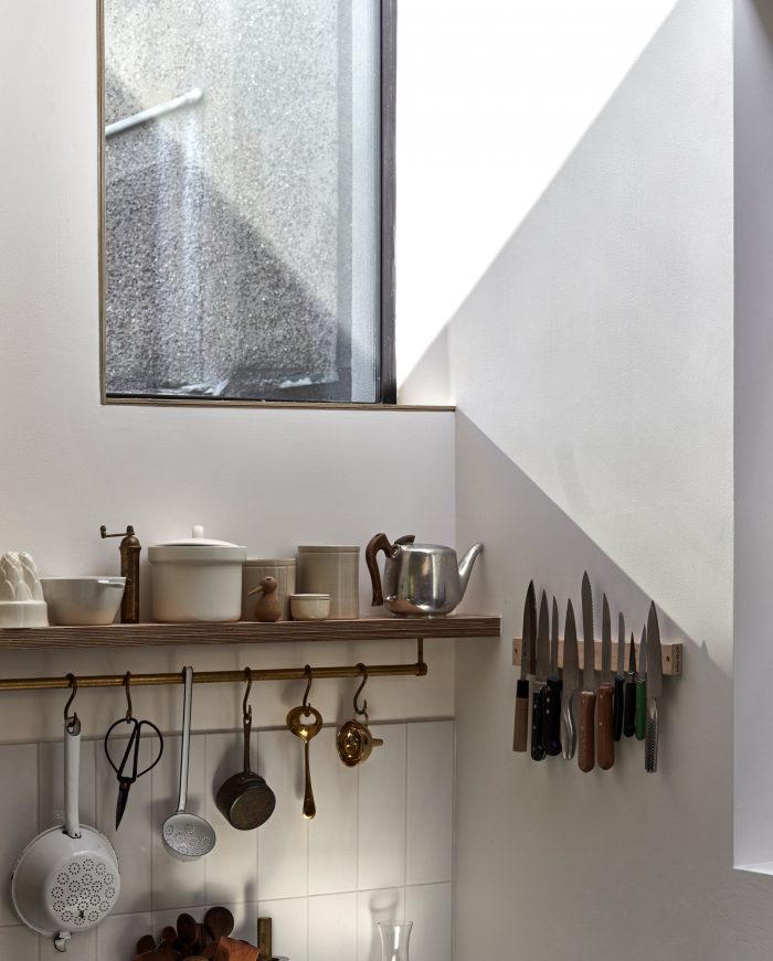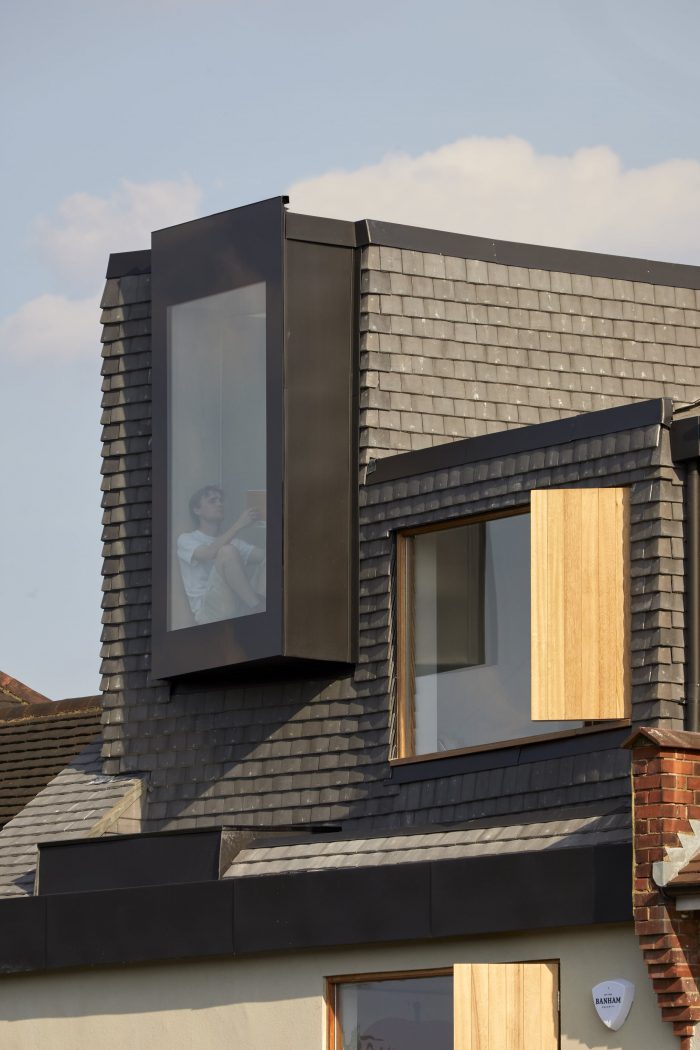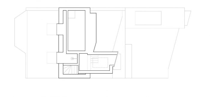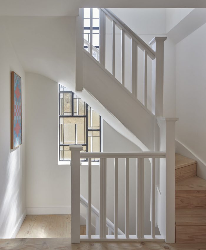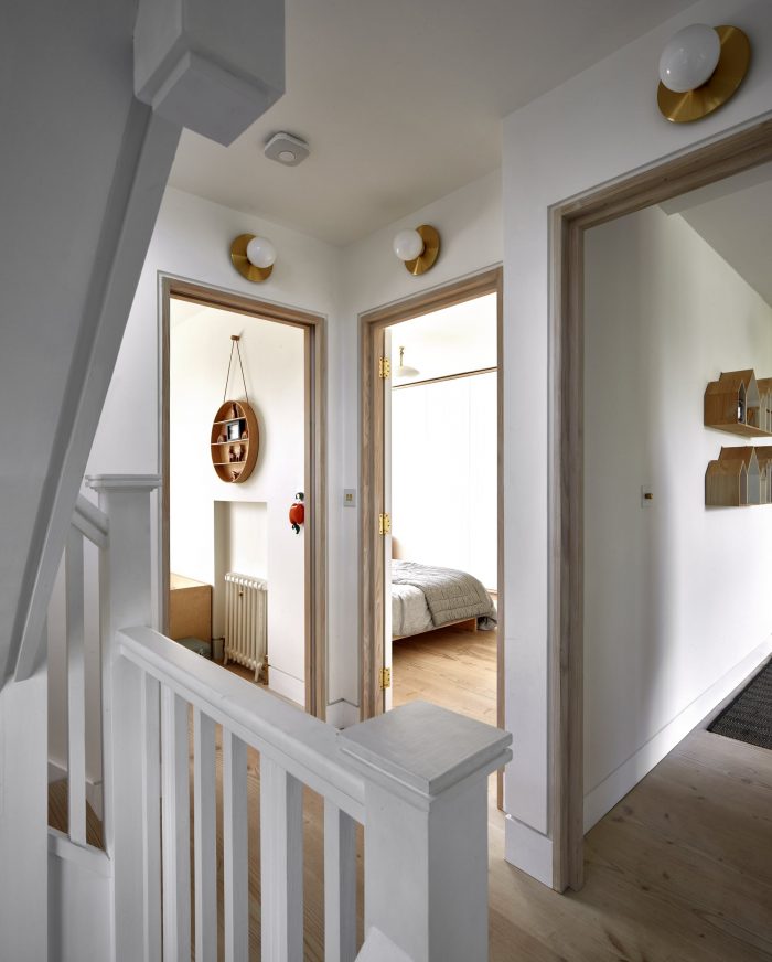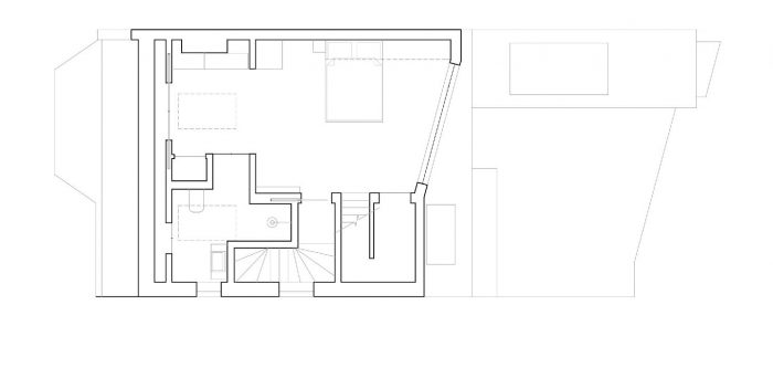 Finally, a loft conversion houses the Master Bedroom- a dream-like space that folds onto its corners with beautiful storage solutions and a second half-floor that extends upwards like a tower where you can read or gaze outwards from the heights of the roof. A house with thresholds into unique personal spaces, the atmosphere inside the house is as designed as its surfaces, with great attention to the lighting- both natural and electrical- and the ventilation.
