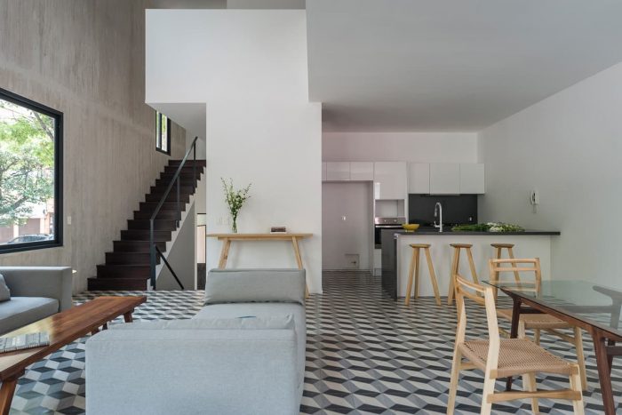 Over these houses there are duplex apartments that borrow the concept of elevated open street, typical of the neighboring buildings from the early twentieth century.