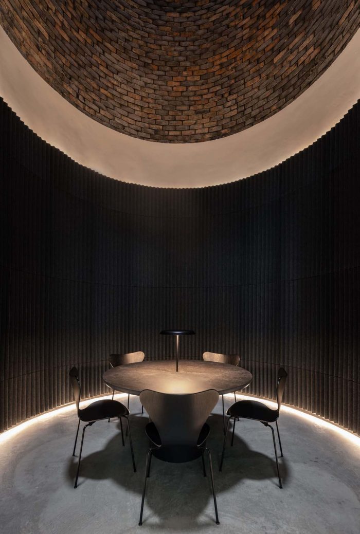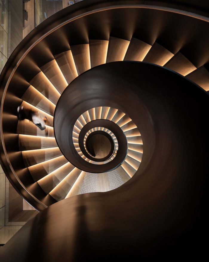Repurposing the building for people at work - In a building originally designed for machines, the team’s focus was to help Dyson reinvent it for people. In doing so, it was essential to have a functional and inspiring space. A space to support the research, development, and operations teams to work, meet and collaborate. At the heart of this Singapore office design for Dyson is the former Turbine Hall. A dramatic four-storey industrial space. Inspired by the quadrangles of academic campuses, this central space serves as a circulation hub, connecting all areas. An inner retreat for agile working and a community space for people to meet and connect. On entering the Turbine Hall, people are greeted by a dynamic feature staircase. This is the functional spine of the workplace linking all four floors. It supports the connection between departments and activates circulation in the busy, central Turbine Hall. At the other end, adjacent to the Work Café, is the Amphitheatre. This is a destination for shared experiences, encouraging communication, experimentation, and constant learning.