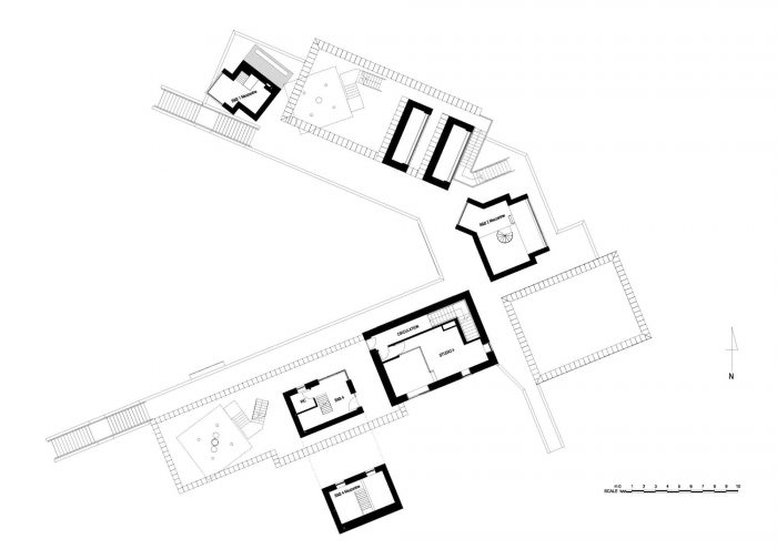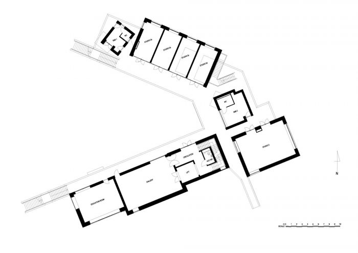 该中心从建筑环境和自然景观中获得了灵感。一个坚实的基座反映了港口的墙壁和附近的悬崖,包含了接待处、画廊空间、餐厅和艺术家的工作室。外部楼梯通向上层,直接连接到沿海小路,使东码头成为一个多孔的物体,可以被攀登、穿越和探索。一楼的餐厅通向一个新的公共空间,当地人和游客都可以坐在那里,欣赏回城的景色,以及码头的船只和远处的大海。