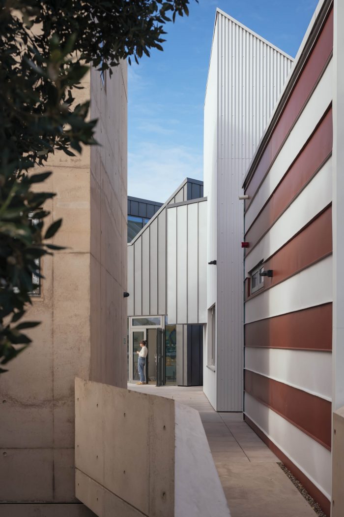 The larger elements contain workshops for makers and artists, as well as the Creator Space – a unique learning environment developed by Year 8 students from local schools working alongside architects PEARCE+Faegan and environmental psychologist Helen King.