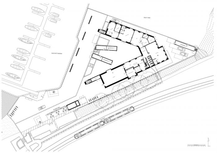 基地上方有一系列有特色的特异结构,参考了瓦切特内不拘一格和经常不寻常的建筑。这些建筑采用简单坚固的材料,向港口的工业性质和它所包含的活动表示敬意。
