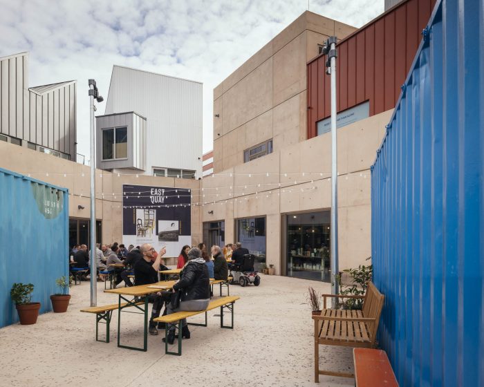 A new home for the creative community has been completed in Watchet, Somerset. East Quay was designed by Invisible Studio and Ellis Williams for the Onion Collective CIC – a local female-led, not-for-profit social enterprise. It provides a new cultural anchor for the town and the surrounding area, featuring two contemporary art galleries, 11 artist studios, a paper mill, a geology workshop, a print studio, a restaurant, an education space, and five accommodation pods arranged across the top of the building.
