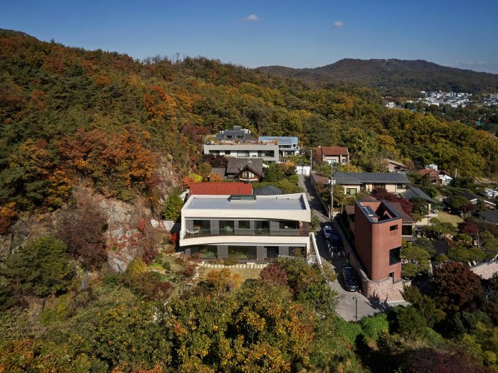 檐屋是位于果川的一对夫妇的住宅,描绘了如何重新解释韩国传统的檐屋类型,以达到高环境和美学标准。该项目位于观岳山和清溪川之间,可将周围的山景一览无余。该项目旨在实现自然坚守和空间体验共存的建筑成果。此外,在这个过程中,光与影之间的持续互动以及各种景物的交替都有望得到体现。