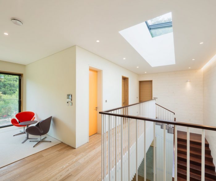 被动式房屋--Eaves房屋被高水平的气密结构和绝缘材料所封闭,内部与任何外部干预隔离。在支持居住方面,房子采用了被动式住房标准,在内部循环使用基本能源。热回收系统(HRV)的引入支持实现高性能的通风和空气过滤的房屋。在地下室,安装了低噪音过滤器,从内部吸入有毒的呼出空气,同时将外部的新鲜空气在内部循环。这些措施通过设计和施工有效地减少了客户的年度能源消耗。
