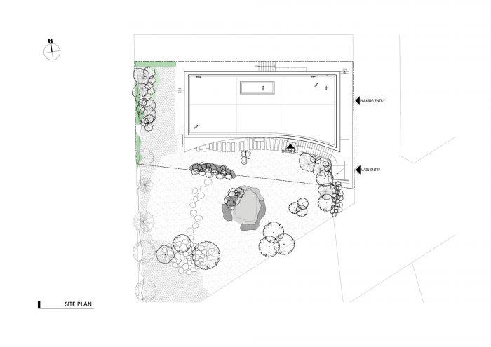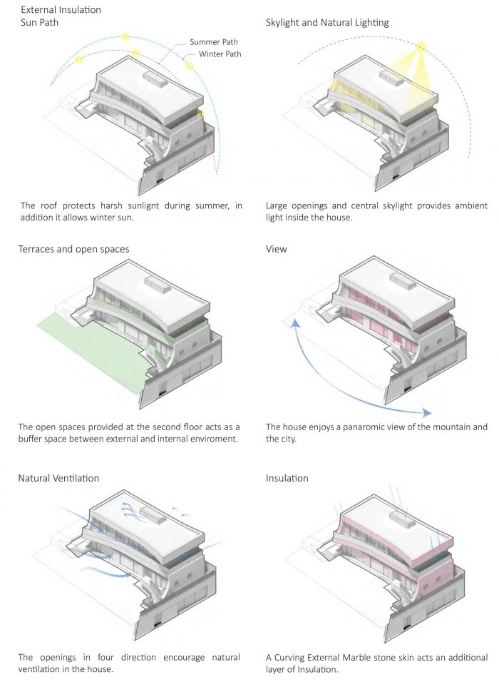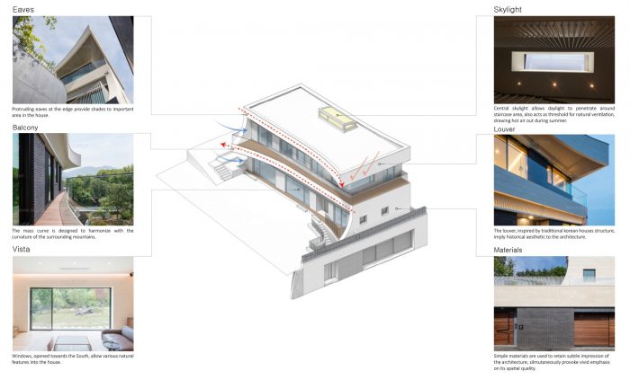 Space, an articulation of nature - Designed to provide an optimal indoor environment for living, Eaves house promotes uniquely strategic narratives, establishing a homogeneous perception of the two mountains and the surrounding housing complex. The curves, inspired by the curvature of the surrounding mountains, reflect as an extension of the surrounding landscape with vista opened towards the sun-lit Southeast.