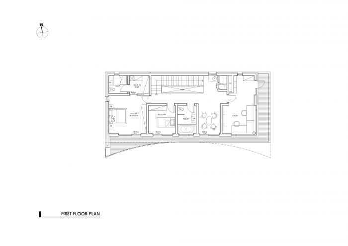 空间,自然的衔接--旨在提供一个最佳的室内居住环境,Eaves house提倡独特的战略叙事,建立了对两座山和周围住宅群的同质化感知。曲线的灵感来自于周围山脉的弧度,反映为周围景观的延伸,视野向着阳光普照的东南方向打开。
