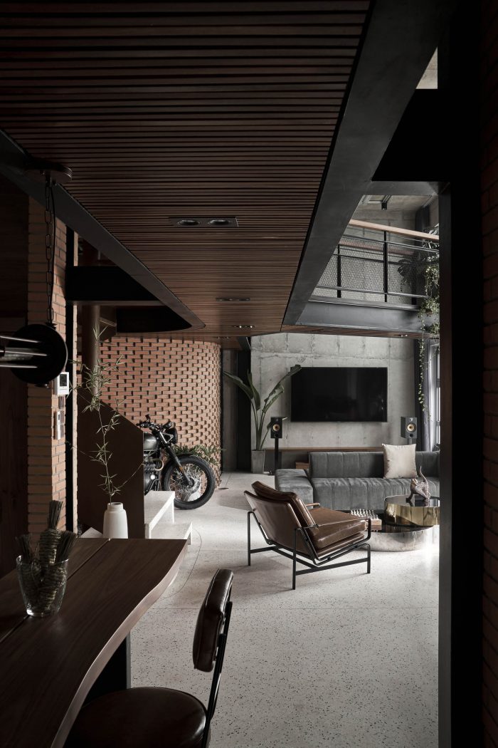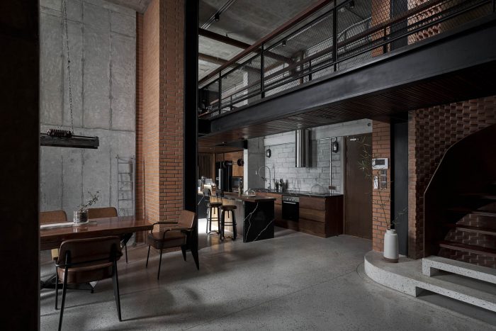Never before has the Industrial style been so apparent in an apartment that creative breakthrough in space. The high ceiling system brings a solution for the further renovation of the mezzanine system without having any obstacles, moreover, the corridor connected together just like a fancy flow, regardless of standing at any positions of this mezzanine and we can enjoy every panoramic views.