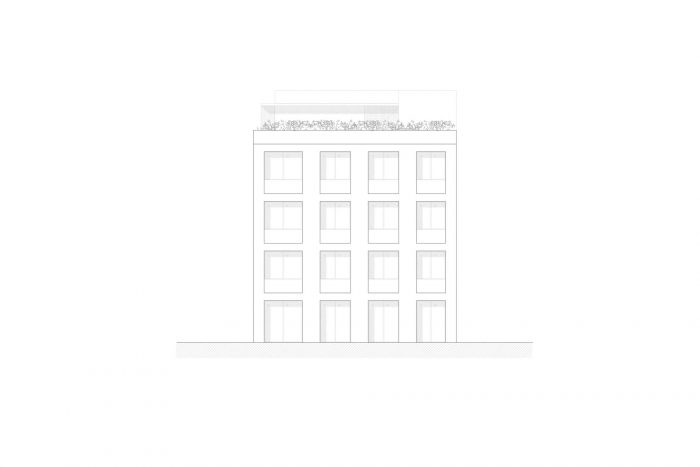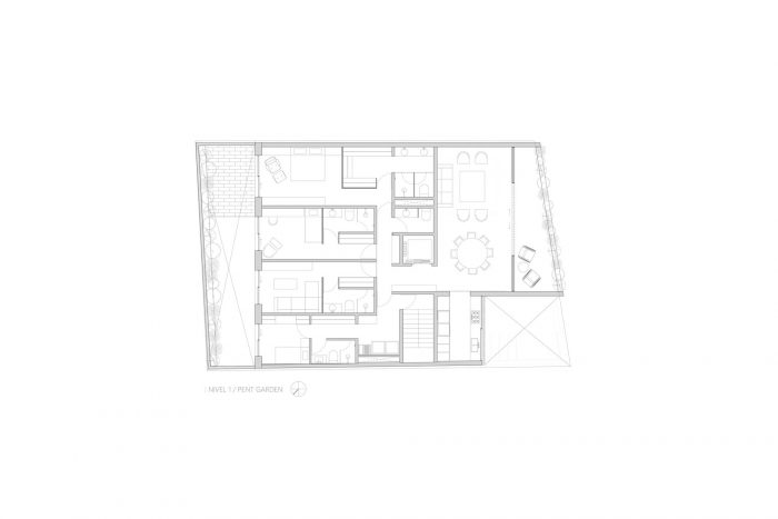这个项目每层有一栋房子,在邻居之间提供完全的隐私。每间公寓的入口是通过电梯,直接通向公共区域。在这个空间里,有一个露台,直接与室外空间相连,这使得光线的进入和与该地现有植被的关系保持不变。每间公寓的私人区域位于建筑的后面,允许其居民的隐私。在上层,有一个帐篷的私人屋顶花园和一个公共花园,两者都被植被和城市的景色所包围。主立面是由混凝土框架组成的,这些框架模拟被堆叠在一起,最后铺在天然石墙上。这些体块在环绕整个街区的混凝土饰面中具有连续性。这个空间与每个住宅的公共空间相对应。在随后的一个平面上,是厨房区域的外墙,有一个天然的木格子系统,允许它打开,让自然光进入空间,同时在里面提供隐私。我们寻求使用自然状态下的材料,与建筑一起老化,使其能够随着时间的推移继续适应环境。