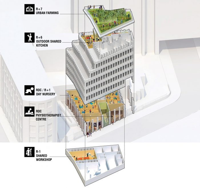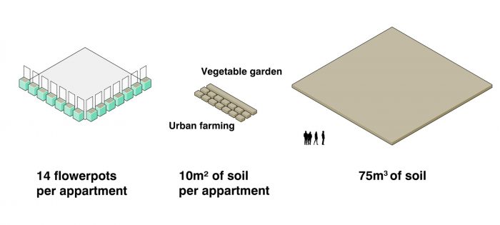 EDISON LITE project proposes a new housing model, based on three main principles: the creation of ‘made-to-measure’ housing units, whereby the future residents were able to participate in establishing the brief as well as the design of their home; the provision of 20% extra surface area, defined and shared with the residents: this provides access to space and facilities that would not otherwise be available to individual residents; to welcome residents into an existing landscape: largely planted during works, the architectural project includes 75 m3 of soil, divided between 290 planters and a large, 150 m2 allotment on the roof.