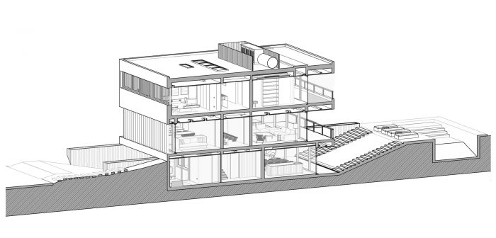El Alfalfar的房子是一个由三层组成的建筑结构,位于一个长方形的场地上,其背后是一个高尔夫球场的美景。该项目被组织成三个相互堆叠的体量。第一个是一个半埋在地下的钢筋混凝土箱,上面是一个半透明的木箱,在所有的上面是一个包含卧室的白色盒子。这些体量都有特定的功能,并被设计成在功能和美学之间创造一个平衡。