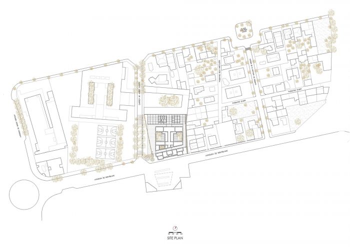 监狱的入口过去是通过一个具有纪念意义的门洞从街上进入,但这个最新的提案取消了监狱建筑院子周围的墙,把它变成一个公共空间,向城市开放,让路人通过其立面的连续性来识别这个设施。一个细长的钢结构是一种姿态,让人想起现在不存在的墙,同时将三个不同的历史时期穿插在一起。反过来,对纪念性门洞的保护也见证了那堵缺失的墙,并增强了该设施的遗产价值。在更大的家庭规模上,窗户和湿润区域等元素被切入,加强了重写本的概念。