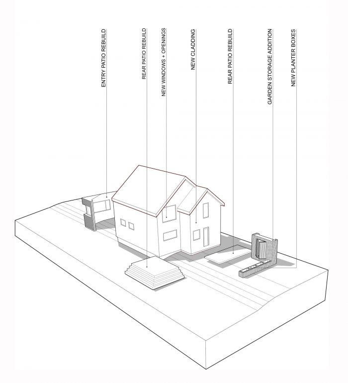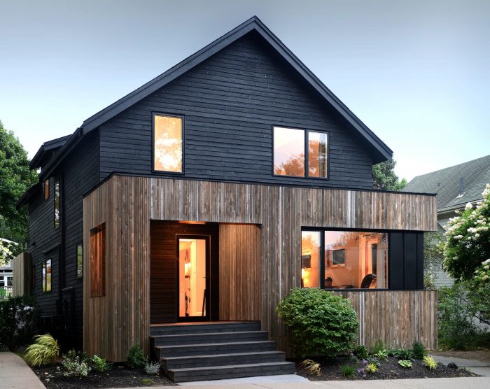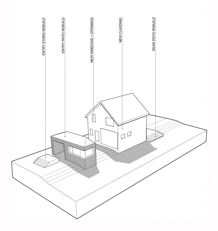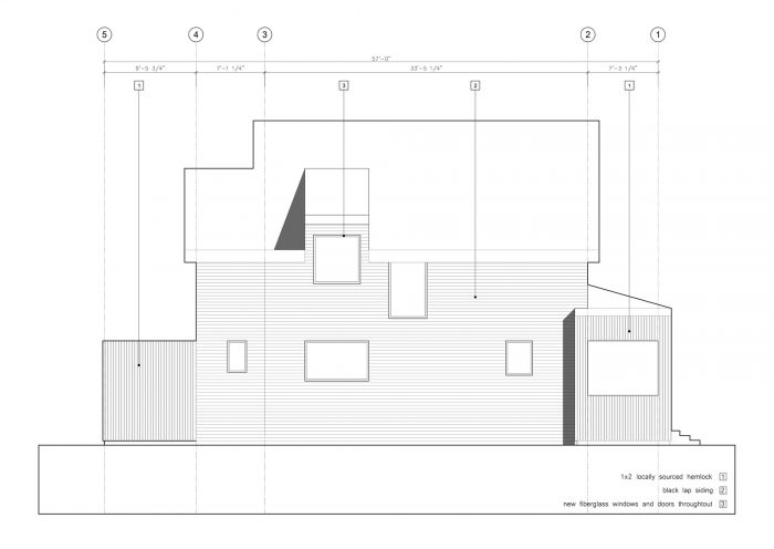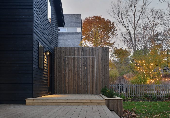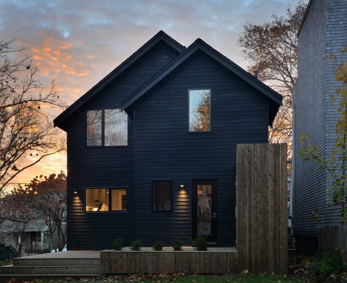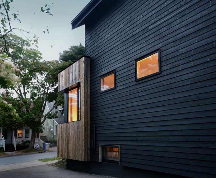 The aim of this project was to redesign and reconstruct the envelope of a dated home in Halifax's West End. Over the decades this residence was the subject of a number of poorly executed renovations and as a result our team aimed to strip the layers of vinyl and wood cladding back to the original shiplap sheathing and rebuild the exterior of the home with the intention of creating a project that was sustainable in both design and construction practices. Using only the highest quality products, the envelope of this house was rebuilt with wood as the number one material choice. The main house volume was clad in Maibec's Rabbited Bevel siding with the EM Plus installation system and the front and rear accent volumes were clad in locally sourced rough sawn Hemlock. The final result is a strikingly contemporary residence with a sustainable material palette that will certainly stand the test of time.