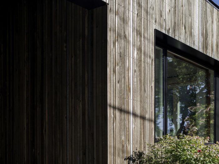 这个项目的目的是重新设计和重建位于哈利法克斯西区的一个过时的住宅的外墙。几十年来,这所住宅经历了多次糟糕的翻新,因此,我们的团队旨在将乙烯基和木质包层剥离,回到原来的木板覆面,并重建住宅的外部,目的是创造一个在设计和施工方面都可持续的项目。只使用最高质量的产品,这所房子的外墙是以木材为首要材料进行重建的。房屋的主体部分采用Maibec的Rabbited Bevel护墙板和EM Plus安装系统,前后的重点部分则采用当地的粗锯铁杉。最终的结果是一个引人注目的现代住宅,其可持续的材料调色板肯定会经得起时间的考验。