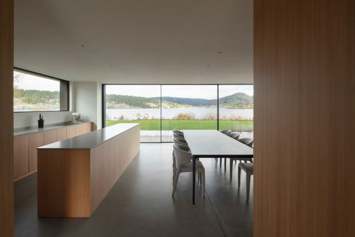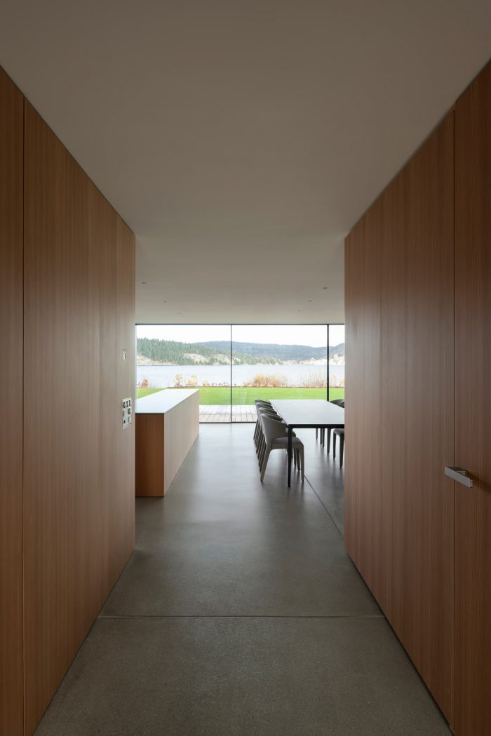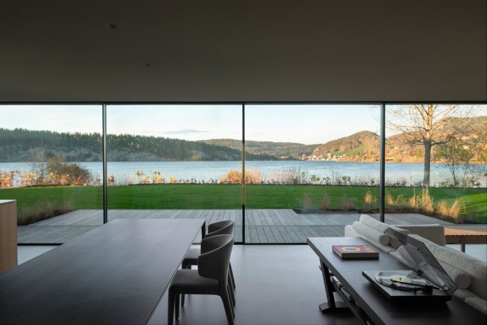 On a 991 square meter plot on the shores of the Lac de Joux, architect Ralph Germann created this residential project for a two-person household. The main wish of his clients was that all the main rooms should face the lake without any supporting pillars so that they could enjoy the panoramic view of the lake, which was a feat of engineering.