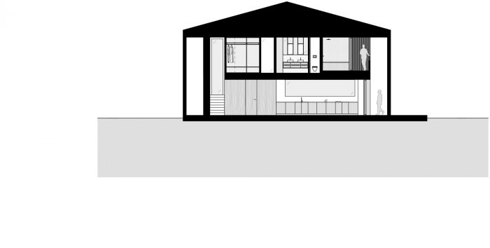 使用燃烧的木材是出于生态学的原因(不处理,不油漆),并强调房子的图形方法,同时尽量减少其对景观的视觉影响。这座房子配备了生态地热供暖系统和集成在屋顶的太阳能电池板。