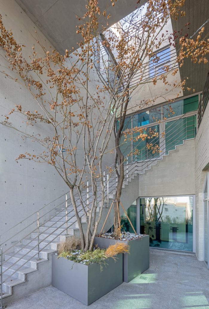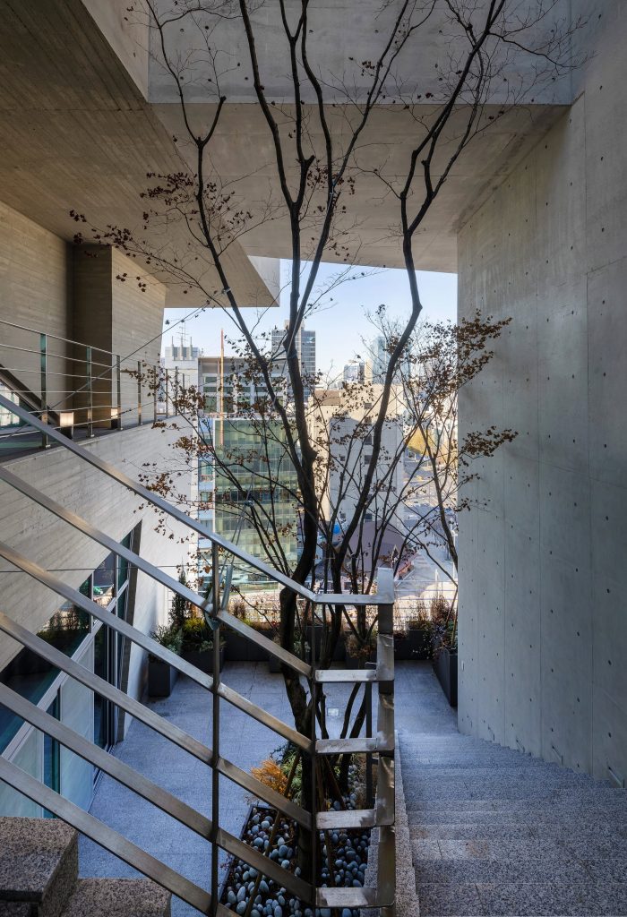 Among the architectural elements, the stairs are inevitably the most familiar being to users who produce Musicals. This is because, considering the characteristics of musical producers whose thought flows are directed towards the audience, their gaze is always fixed on a step-shaped structure. The external stairs that traverse and connect the volume of each floor will become architectural devices that could produce various events while users sit, lean, and pass through like in the auditorium. The external stairs connecting the 1st floor to the 3rd floor breathe with the rental area and are open to the public, providing a 3-dimensional amenity for the urban space.