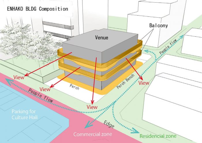 Located about 15 minutes on foot from the nearest train station in a suburb, Enhako Building sits on the border between a residential neighborhood and a mixed commercial-government district. The client contacted us as they were considering the site but unsure whether a leased commercial building there would be able to attract a steady flow of people given the location is a block off the main road and not very close to the station.
