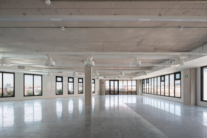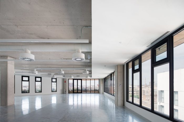All roof elements are designed in white to prevent the materials from absorbing and storing thermal energy. Natural ventilation is also favored thanks to an intelligent system that, through sensors, opens windows on the façade to take advantage of cross ventilation as well as mechanical air-conditioning.