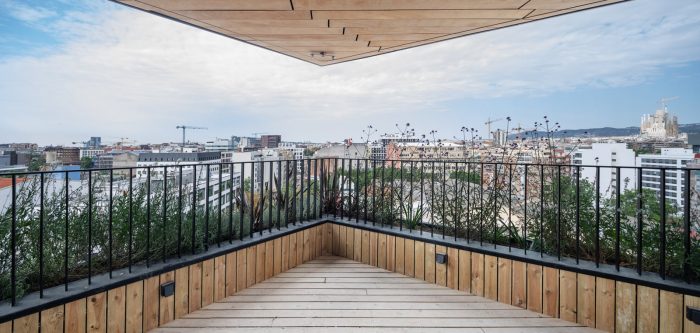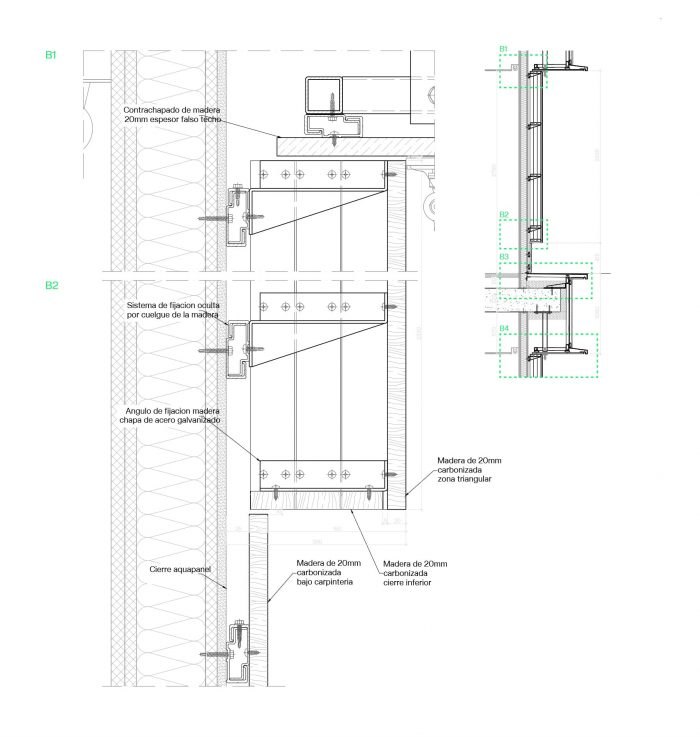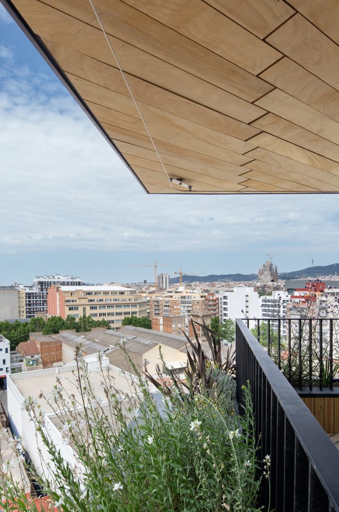 Thanks to this choice, the façade of the building are resolved with a highly durable natural system of very low maintenance. An ancient technique adapted to the strict current requirements in an innovative way. In terms of sustainability, the use of wood represents a substantial reduction in the carbon footprint of the building, a commitment that the team assumes in each project. Each m3 of wood used stores approximately 1 ton of CO2. This fact, together with other measures that reduce the energy demand of the building, has allowed the project to obtain the LEED Gold sustainability certification.