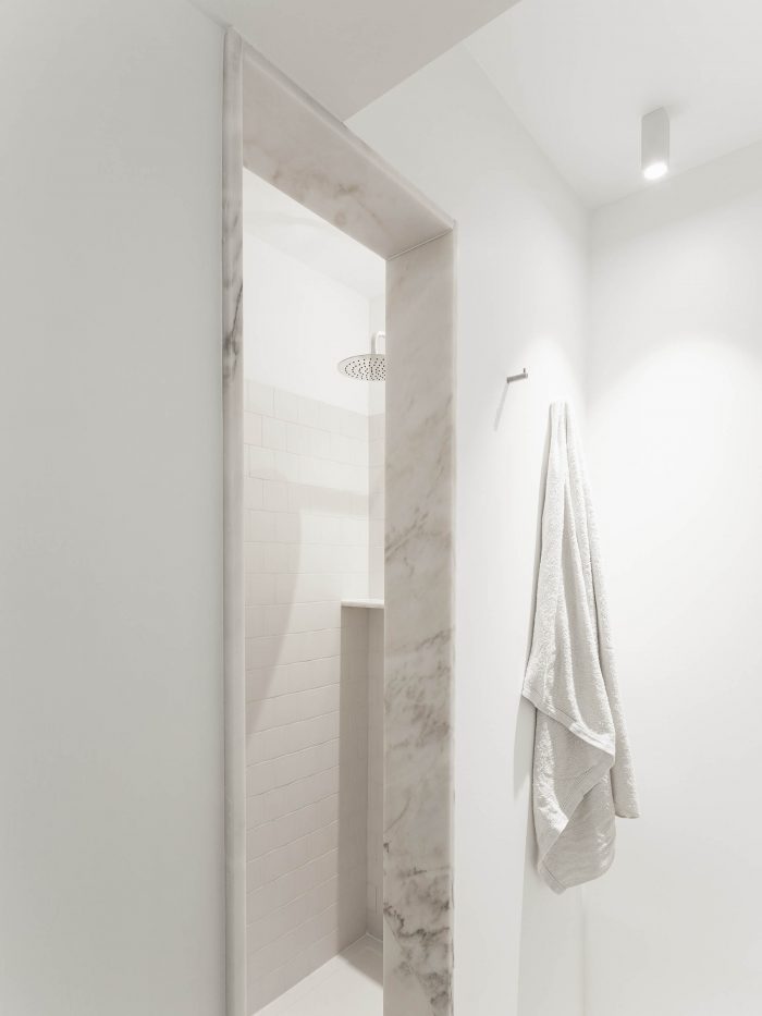 The biggest change is related to the social areas of the house - kitchen and living room - that were repositioned. Their redesign allows the entrance to the apartment to be unburdened and makes better use of the available area.