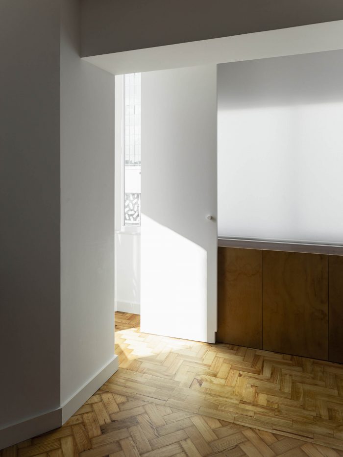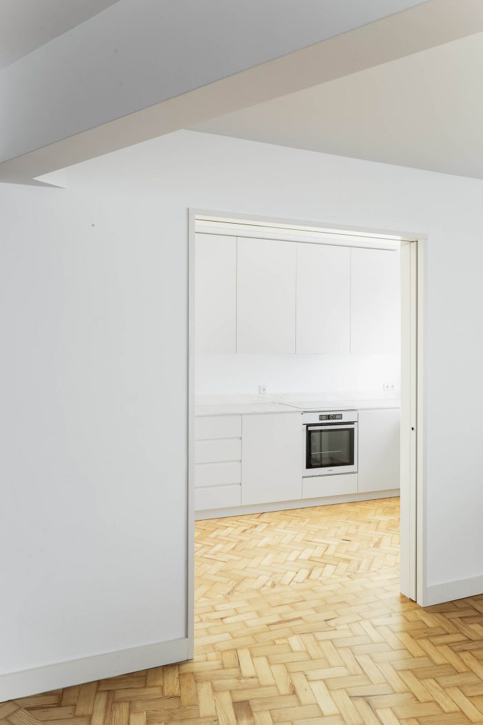 The apartment, with about 98 m², located in Rua de Entrecampos, Lisbon, was characterized mainly by excessive compartmentalization and a poor programmatic distribution of spaces. The intervention intends, with a simple gesture, to optimize the space.