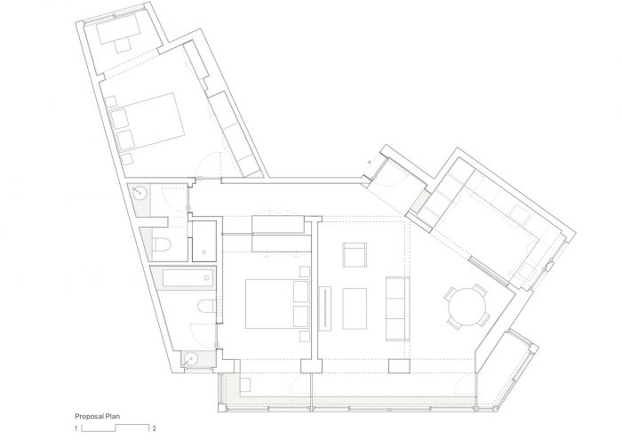 该公寓位于里斯本的Rua de Entrecampos,面积约为98平方米,其主要特点是过度分割和空间的程序性分配不佳。干预的目的是,通过一个简单的手势,优化空间。