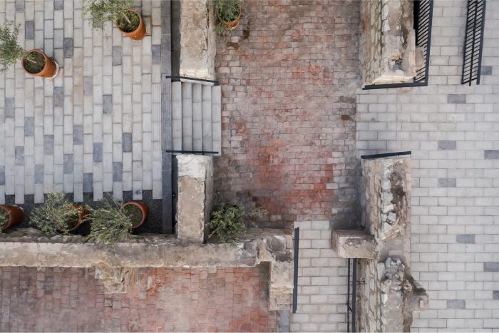 与考古学家合作,所有留在这里的石头和砖石墙都被抢救出来。通过清理和清除因地震和掠夺而积累的土壤,揭示了废墟的重要性和优雅性,将它们转化为建筑方案中可以成为主角的元素。