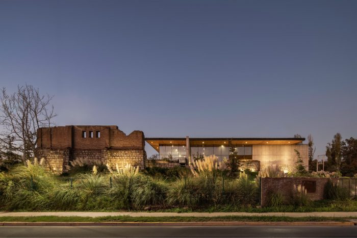 The project is integrated into a system of walls, patios, and esplanades that configure interior, extension, and cocktail spaces. Being located among the ruins of the house allowed it to have privileged views over the sector, and in turn, become a recognizable urban landmark for the community.
