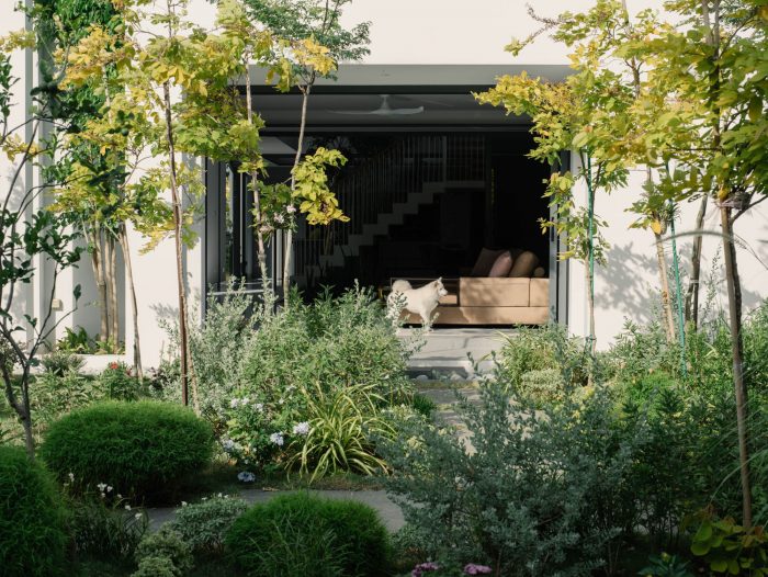 Going against developmental pressure, we convinced the client not to maximise the built floor area but to focus on the quality of the space instead. The result is an unconventionally generous and grand indoor garden spanning three levels, and the intimate presence of greenery throughout the house.