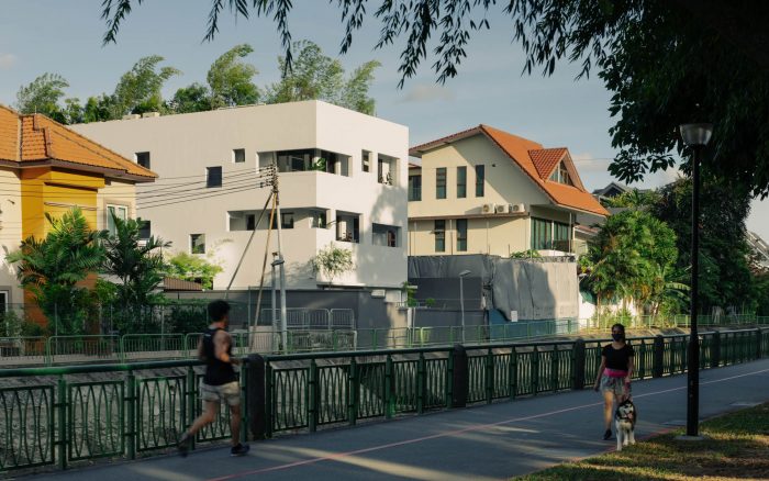 双层景观、室内水花园、带通风天窗的三层庭院和屋顶花园共同创造了舒适的微气候条件;尽管房子朝西,却始终保持着微风和凉爽。我们成功地创造了一个适合气候的热带住宅,而没有采用通常的热带建筑解决方案,即深屋檐和悬挑,这在土地稀缺的新加坡越来越难实现。