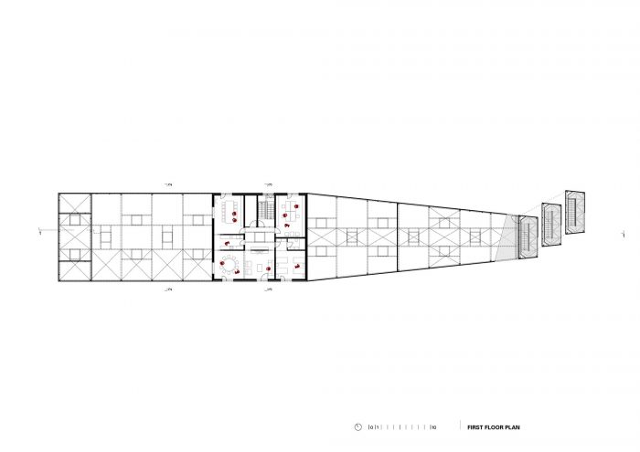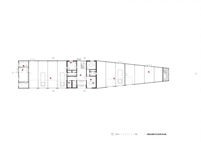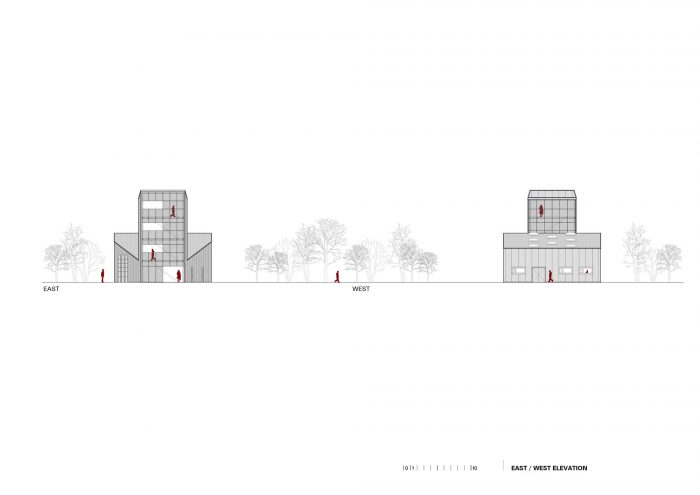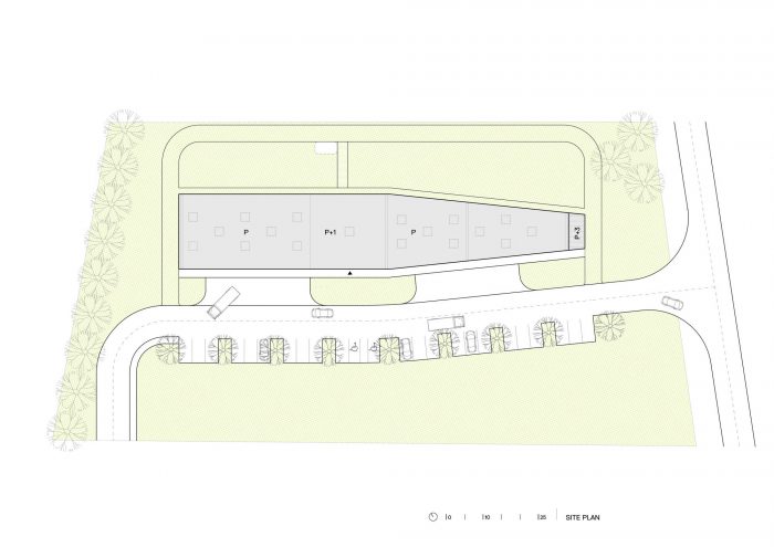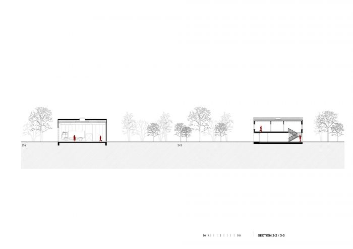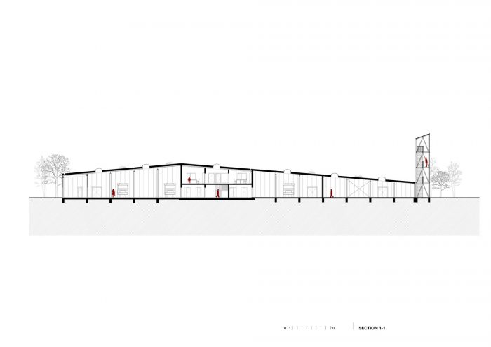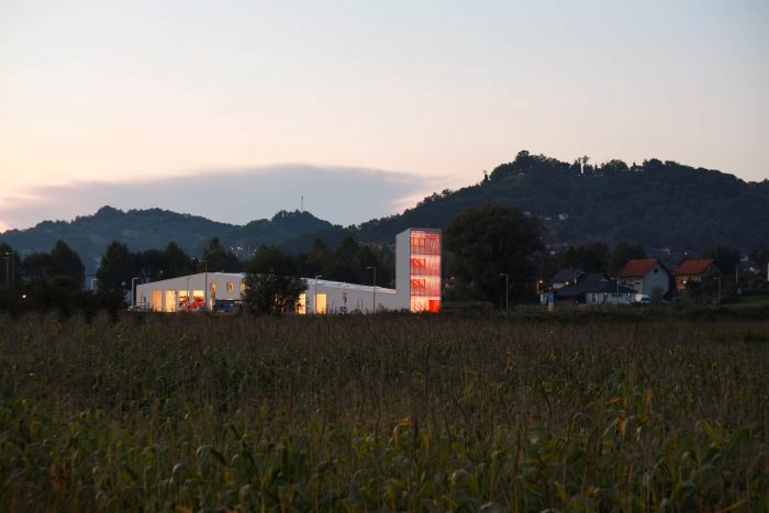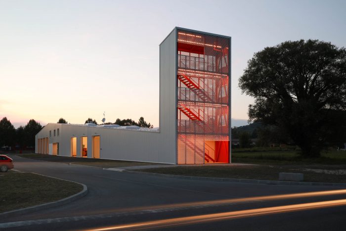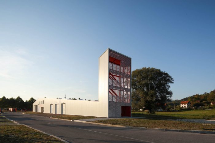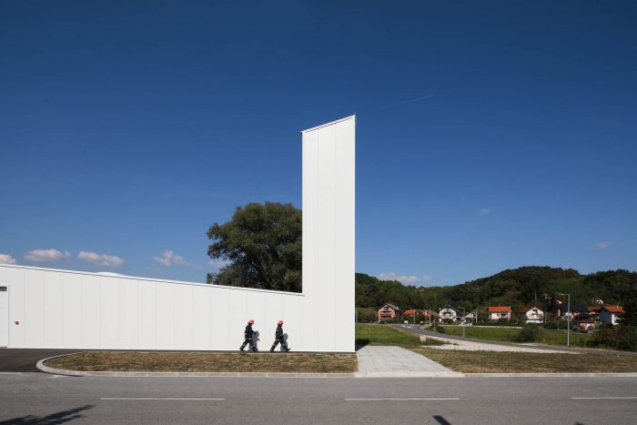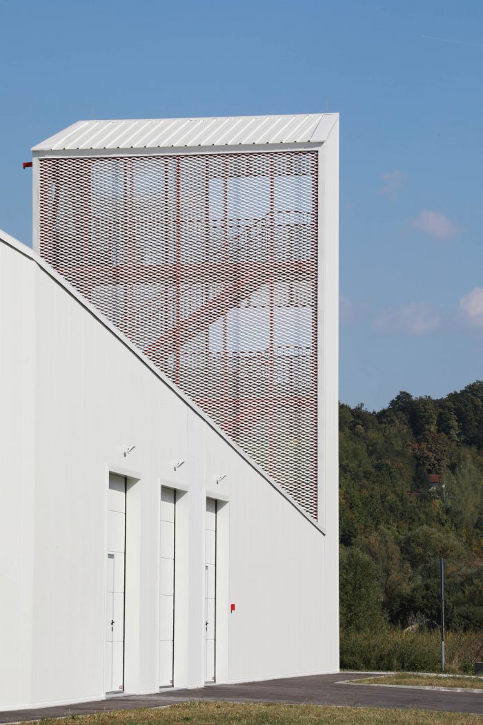 The CZO Building (Center for Environmental Protection) is located in the Municipality of Krapinske Toplice, in the northwestern part of Croatia. The building contains both the office and service spaces of the local Voluntary Fire Brigade. It is conceived as a mono-volume of a varying profile – both in plans and in sections. The building includes a central two-story office core, multiple spaces for vehicles and equipment, and a fire tower.