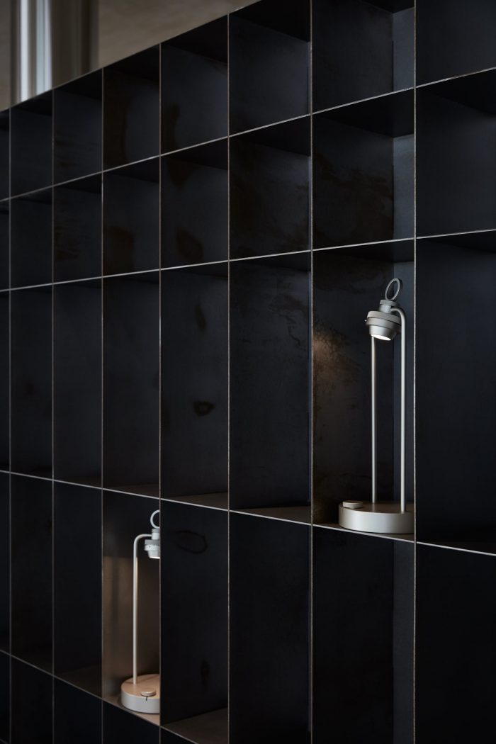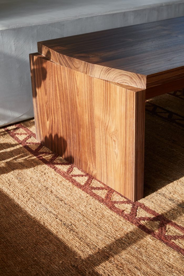 The intention behind the dining area was to revisit the traditional majlis seating and reintroduce it in an elevated dining context. Spaces are carved out of a raised floor to contain seating areas, creating an experience reminiscent of the old majlis seating typology. The seating strategy was also an exciting prompt that Aljoud Lootah, Khalid Shafar, Zuleya, Toru and Bahraini Danish have collaborated with Bone on to design the furnishing of the space. Pieces from these regional designers feature a playfulness that contrasts the sharp and linear nature of the site. The eclectic selection enhanced the character of the space by use of timbers, woven fabrics and leathers.